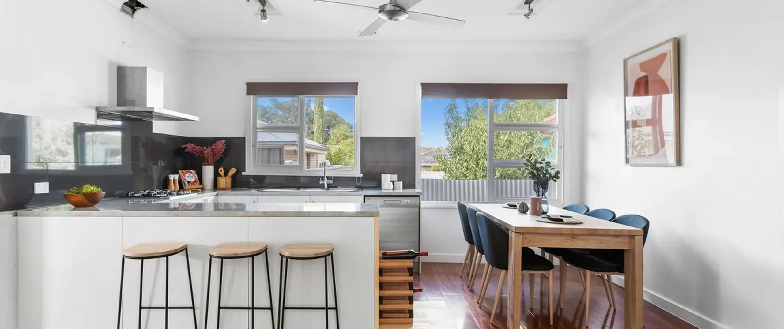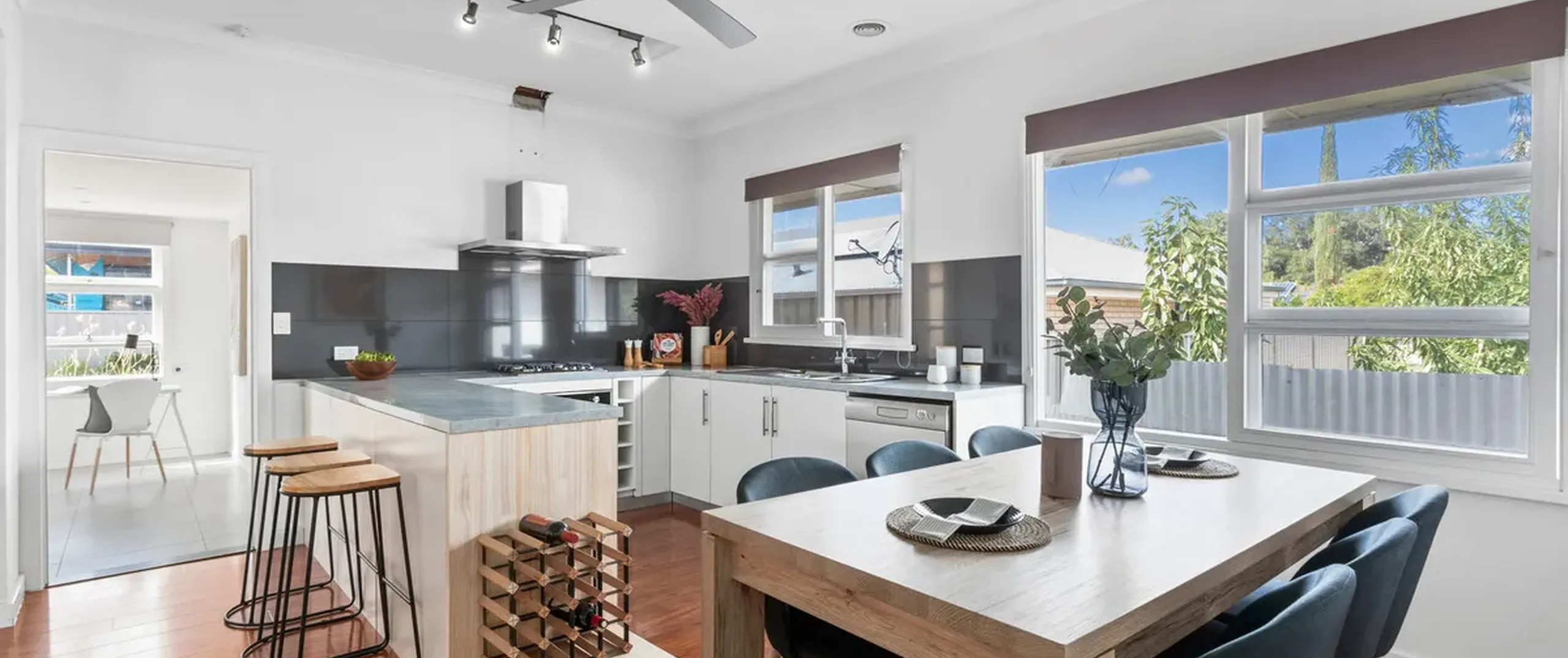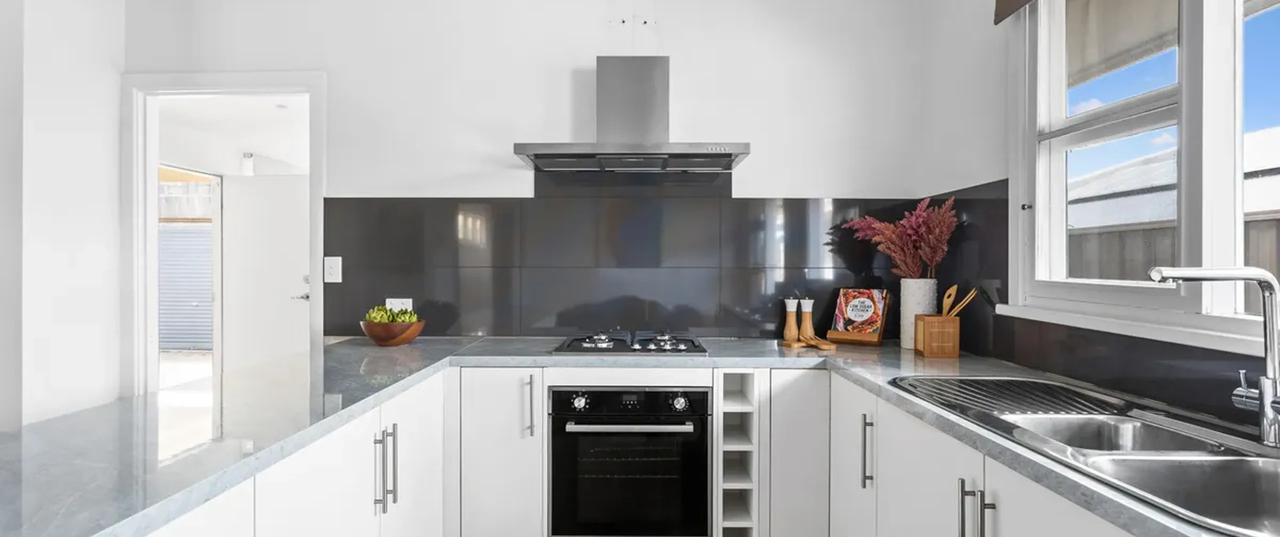 - Stylish kitchen with gas cooking, stainless steel appliances including dishwasher and rangehood and complete with breakfast bar