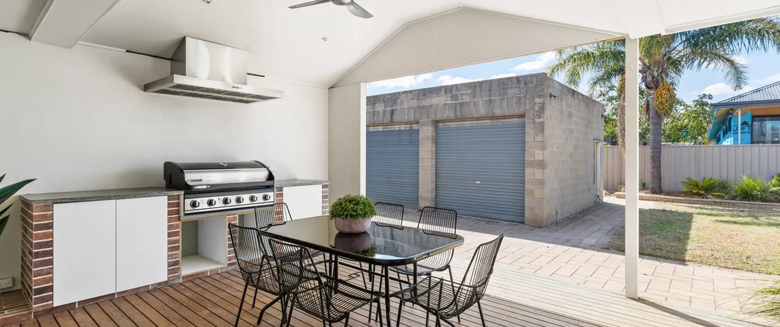 - Semi-enclosed alfresco area with built-in BBQ and ceiling fan, perfect for entertaining friends and family
