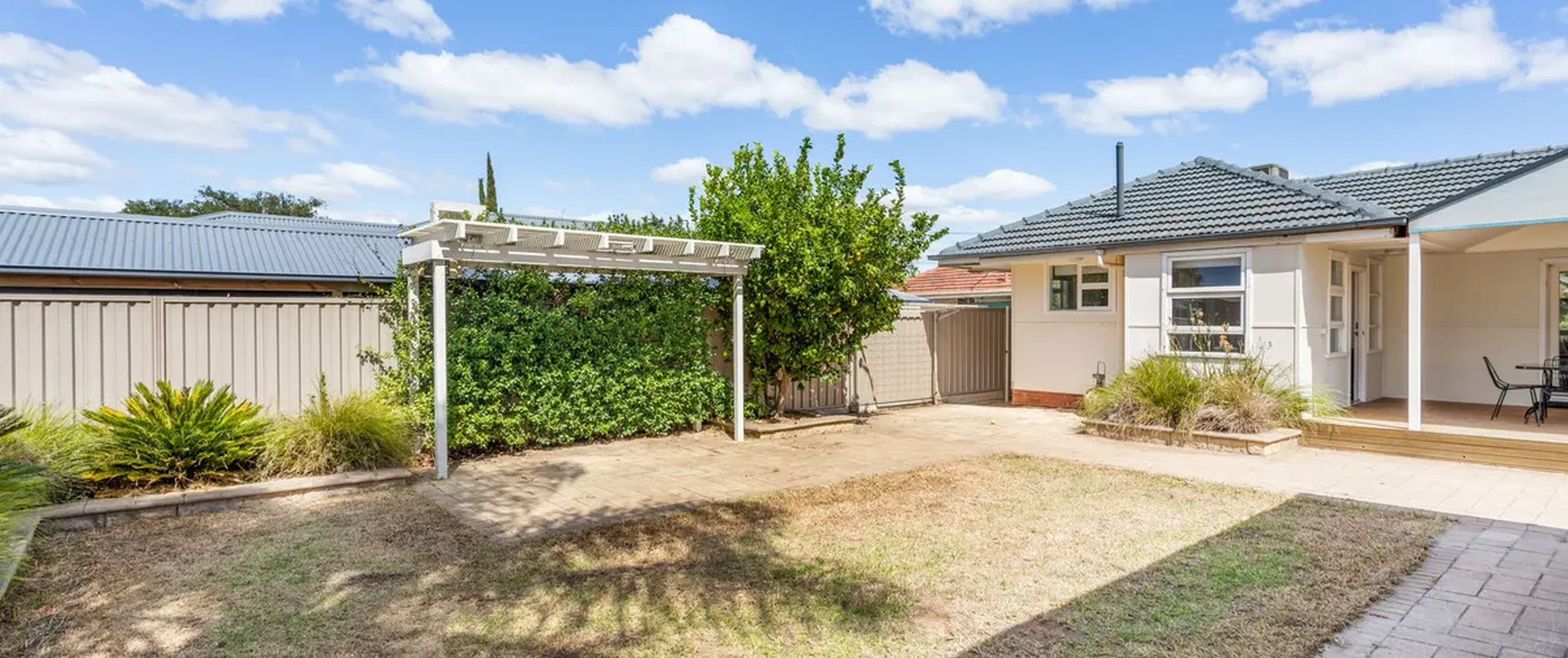 - Single carport with large gated driveway and direct access to the rear of the property