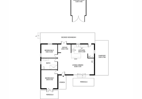 - Office area with French doors opening to decked verandah