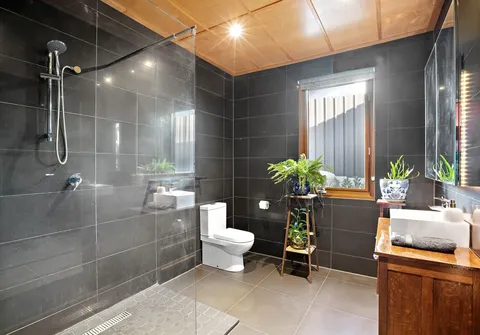 - Light filled open plan living, dining and kitchen with split system air conditioner for year-round comfort