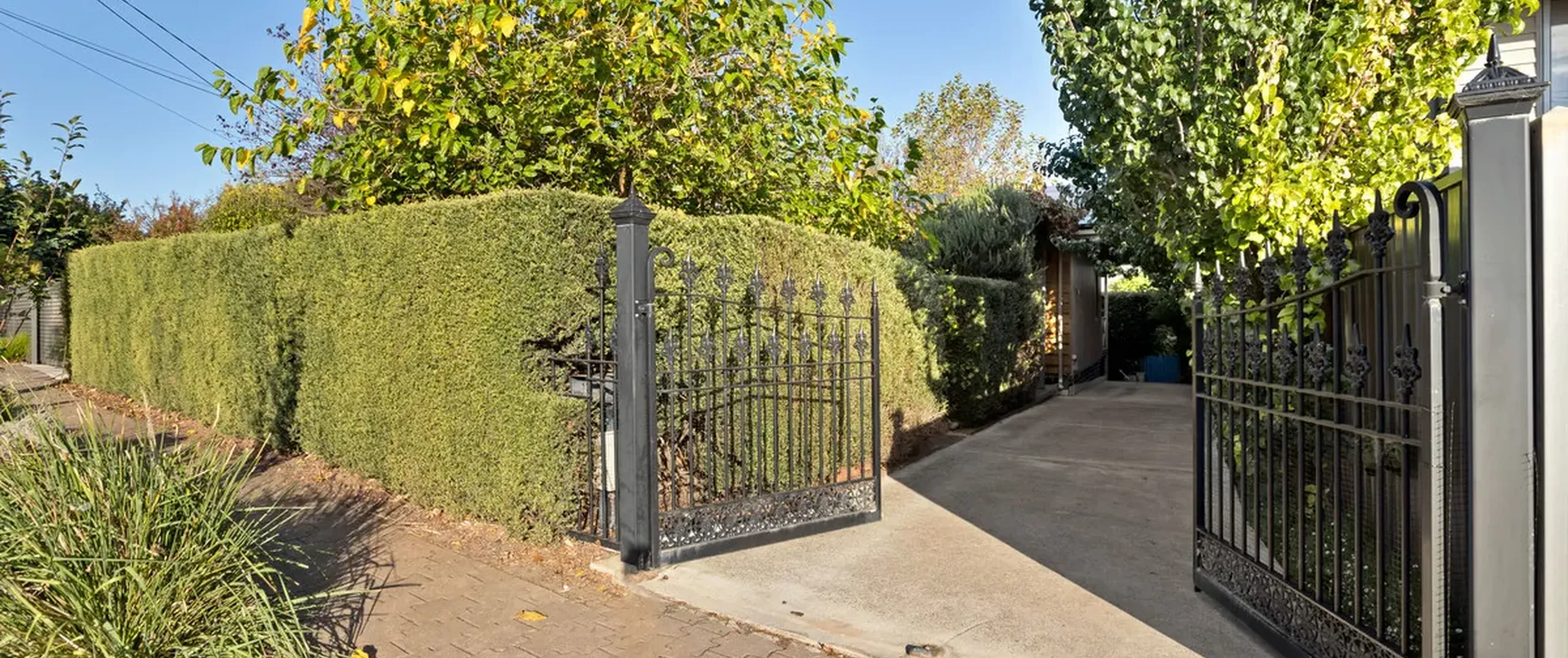 - Long gated driveway for additional off-street parking