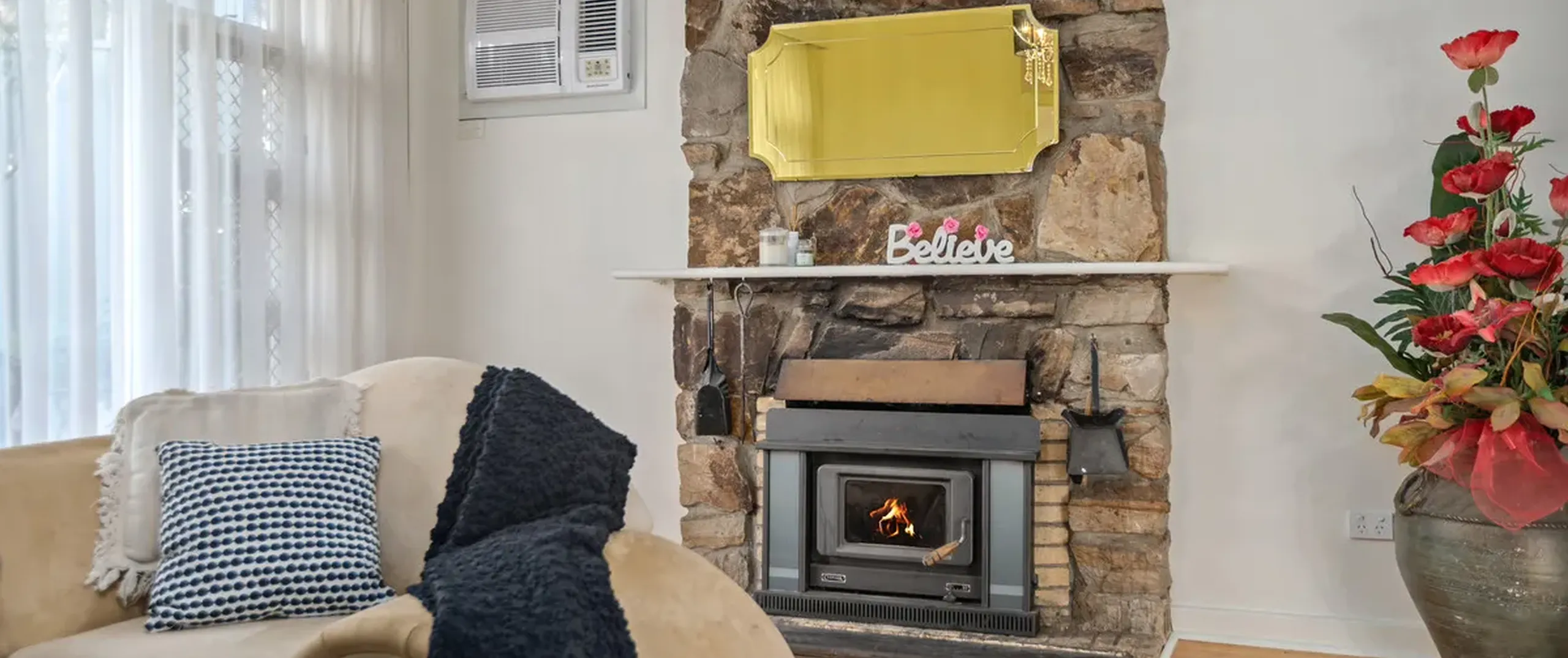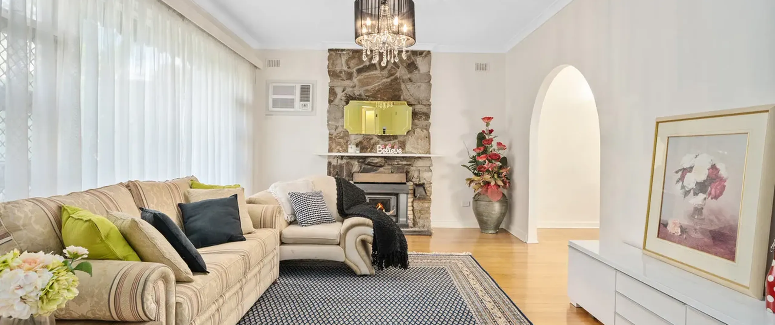 - Spacious formal lounge room with air conditioner and beautiful fire place