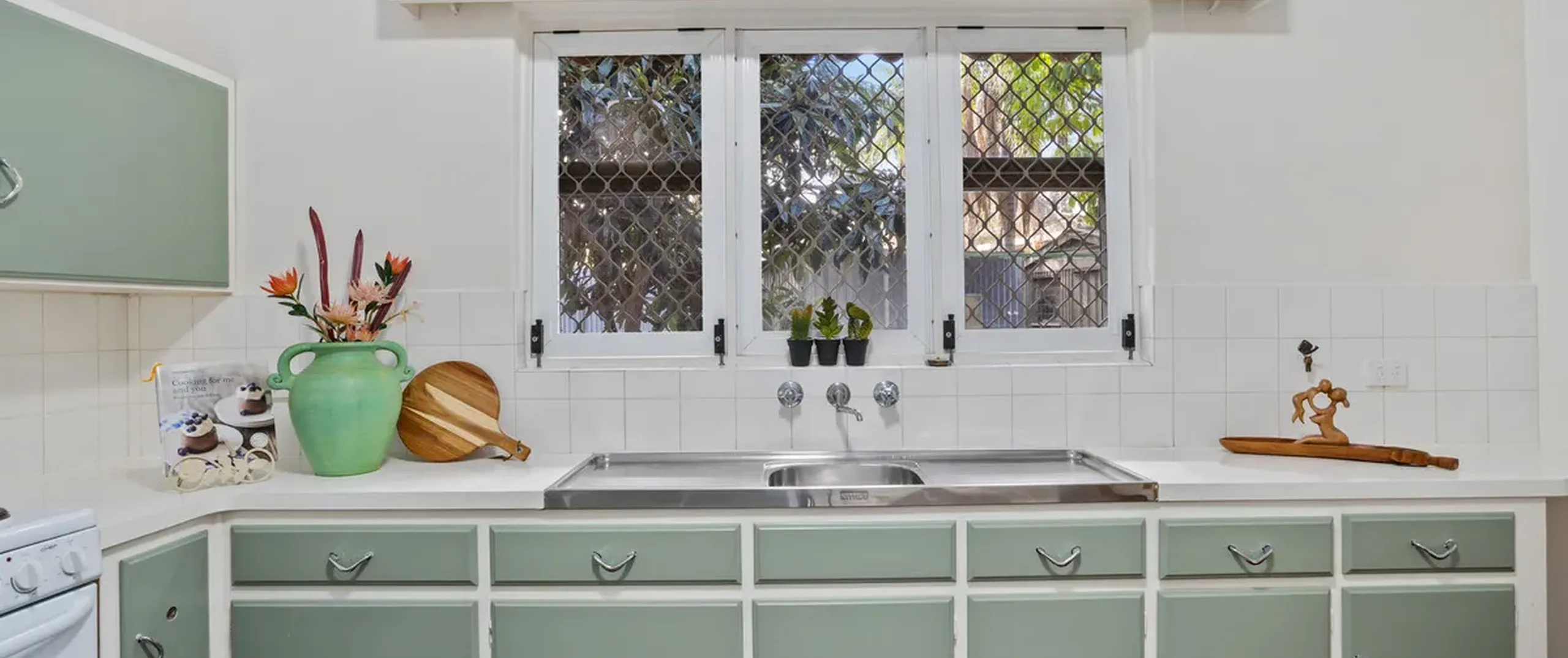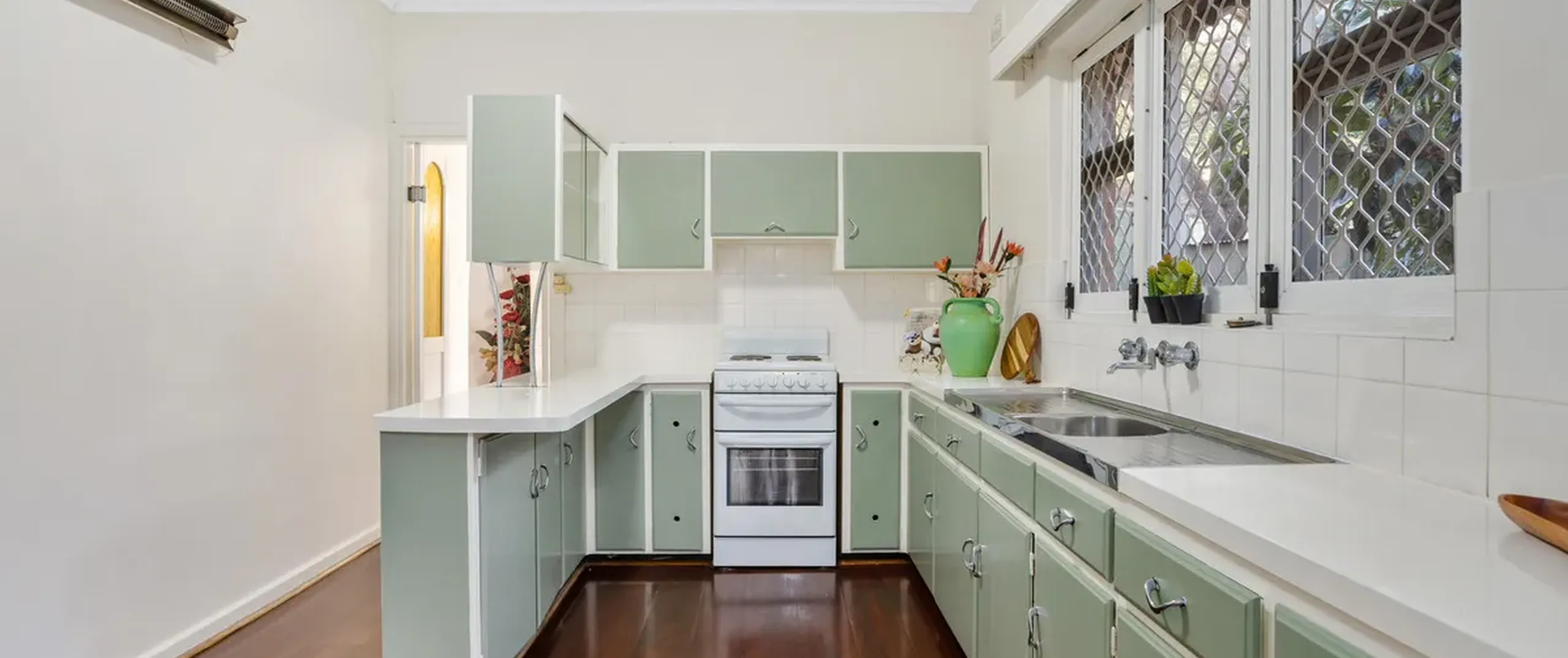 - Original eat-in kitchen with standalone oven and cooktop and ample bench and cupboard space
