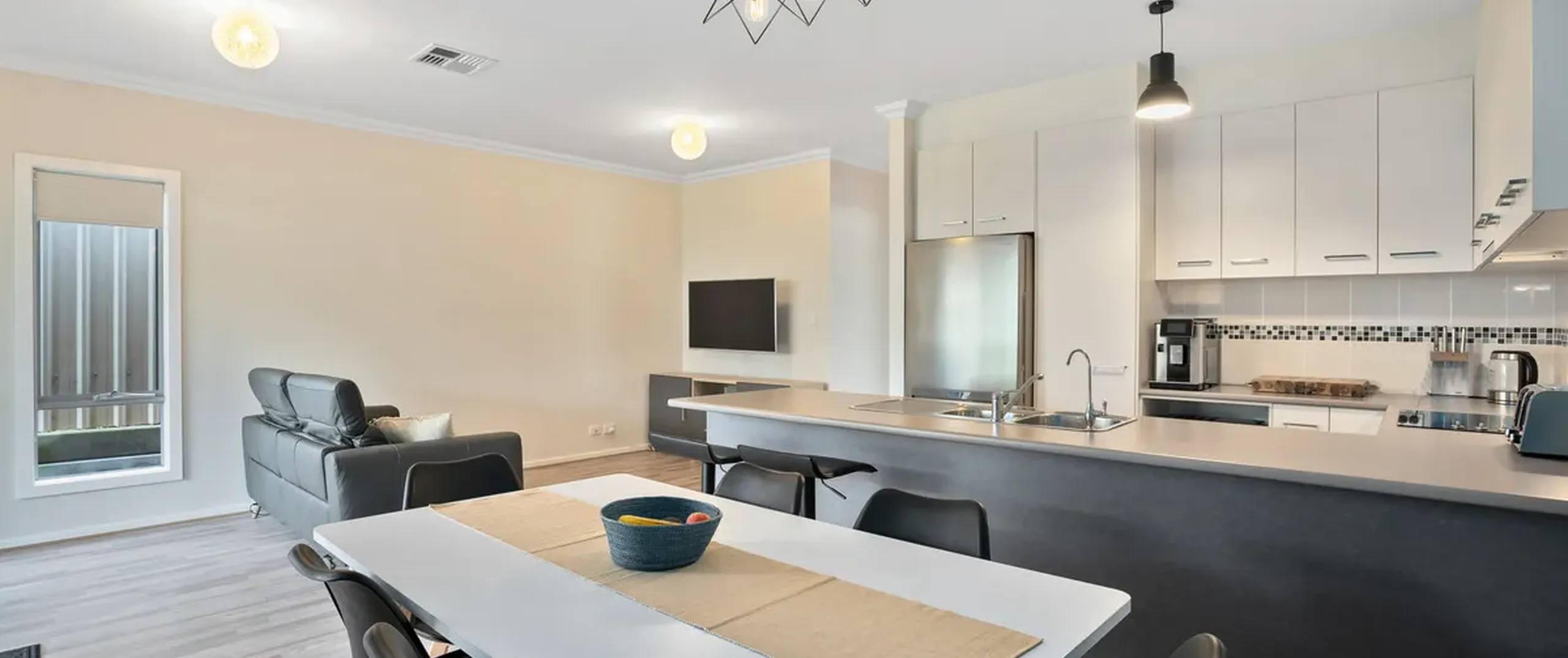 - Open plan living and dining with double glass sliding doors opening to the alfresco