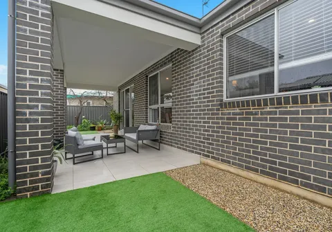 - Low-maintenance backyard with artificial turf, well-landscaped gardens and tool shed