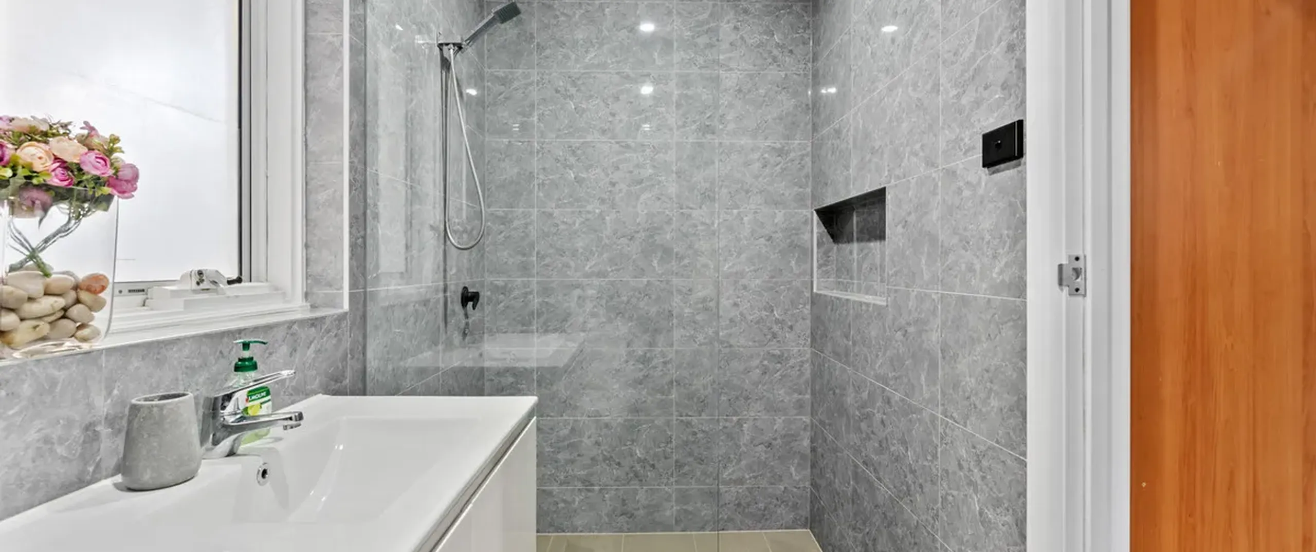 - Spacious main bedroom complete with stylish ensuite, featuring floor-to-ceiling tiles