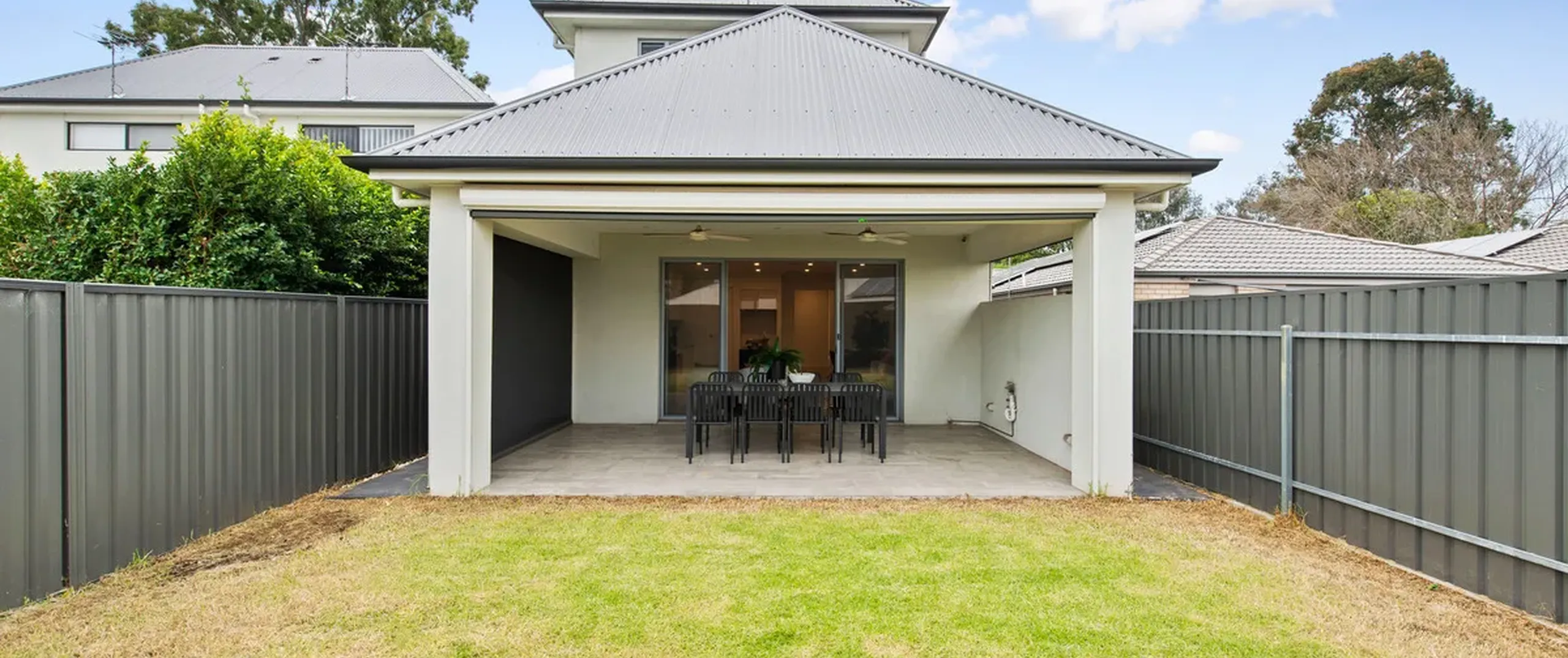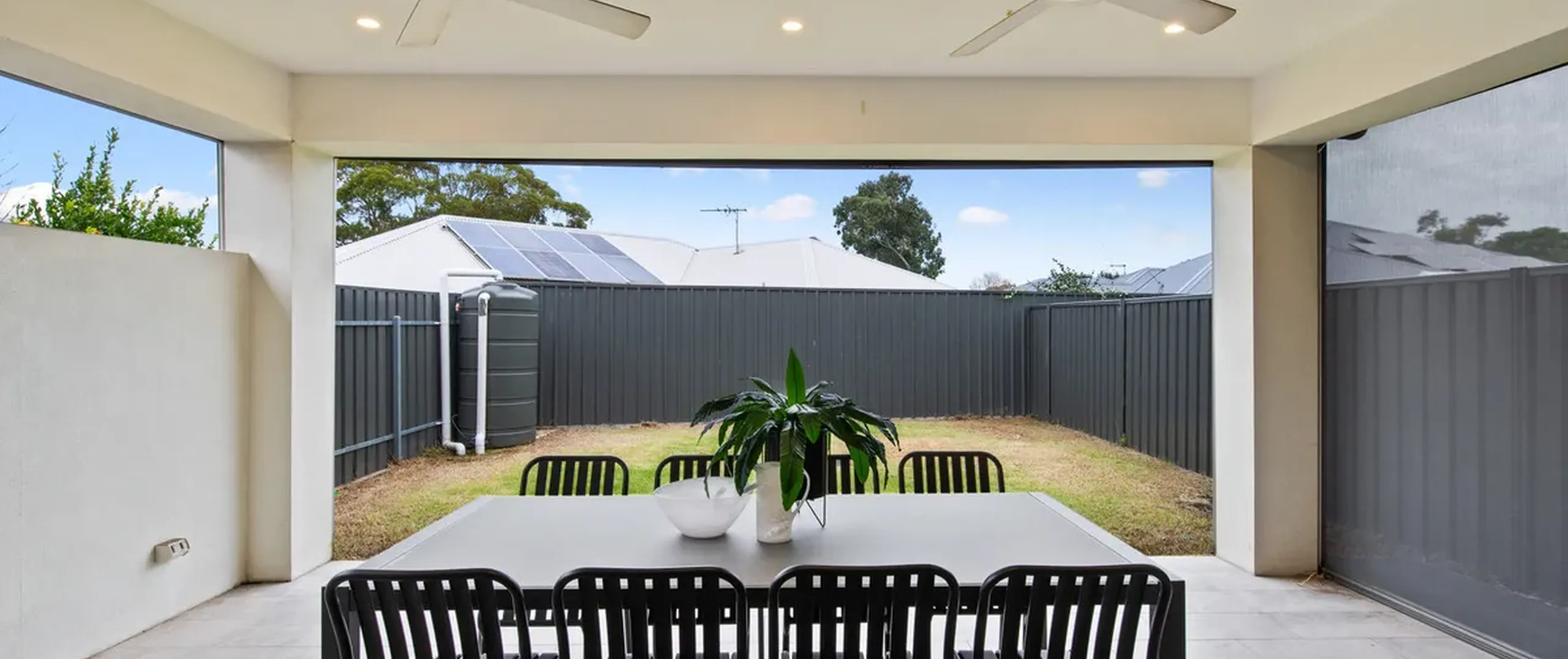 - Outdoor alfresco under the main roof with x2 ceiling fans, plus low maintenance and cozy grassed area