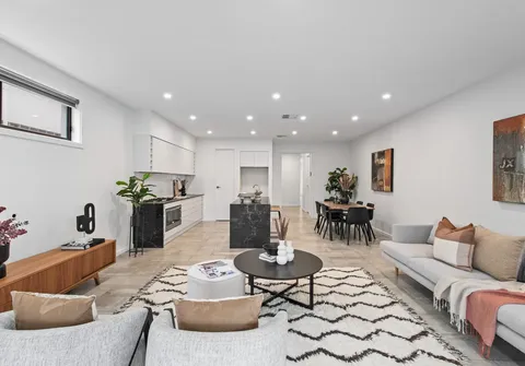 As you enter, an abundance of natural light sets the tone for the elegance that awaits. The kitchen is a chef's dream, featuring high-end finishes such as a spacious waterfall benchtop, a breakfast bar, a walk-in pantry and complete with top-of-the-line stainless-steel appliances. The open plan living and dining area seamlessly connect to the outside alfresco, creating a perfect space for relaxation and entertainment.