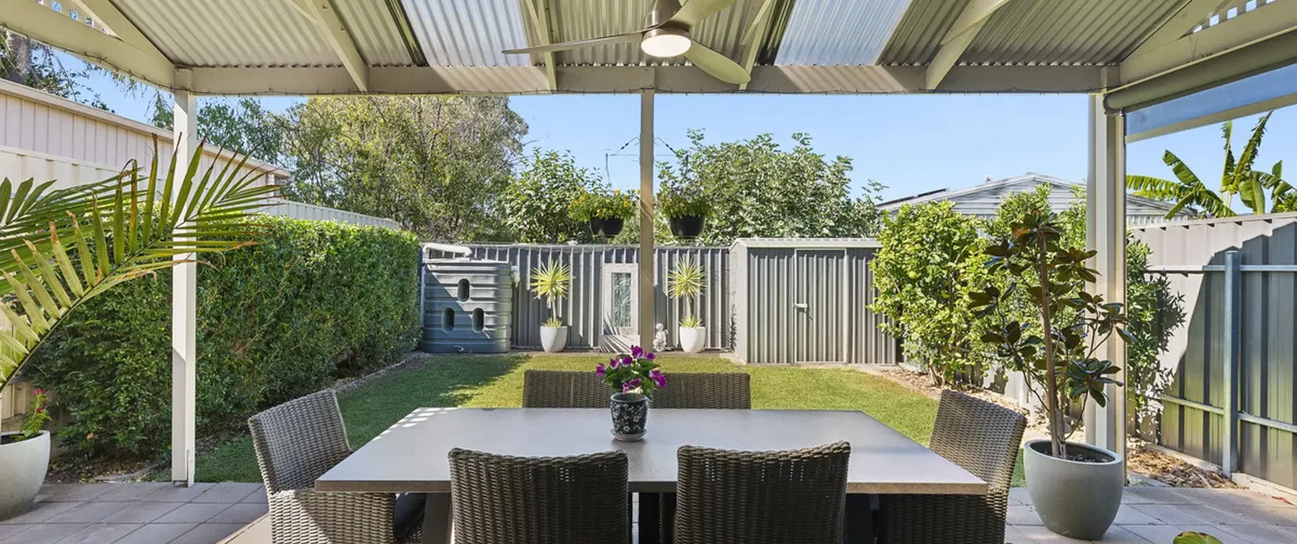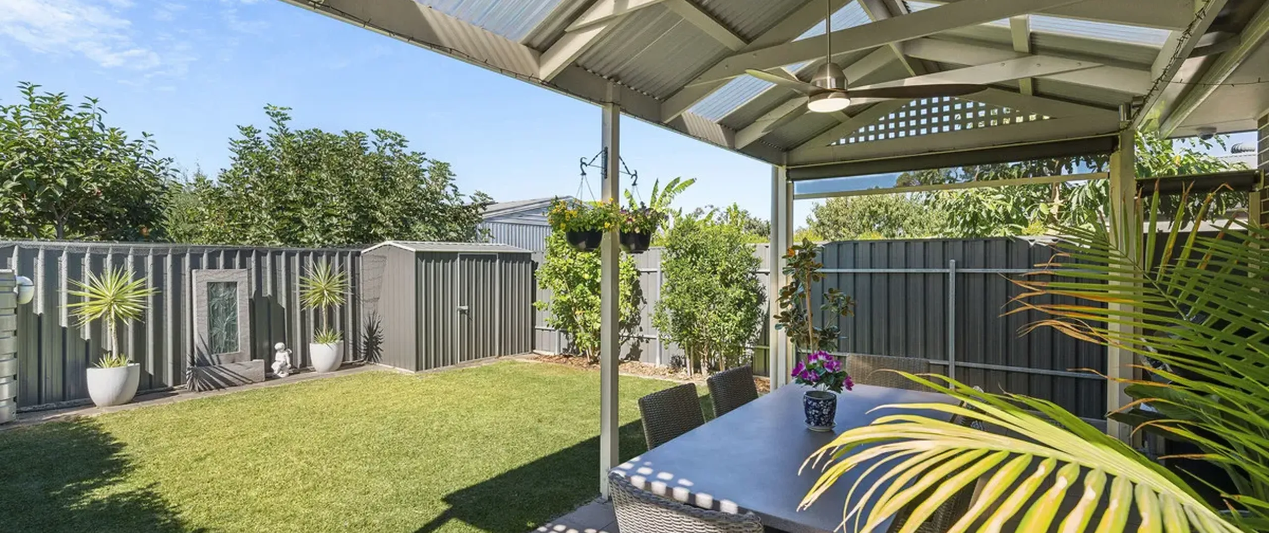 - Paved and pitched roof verandah with ceiling fan, perfect for outdoor entertaining