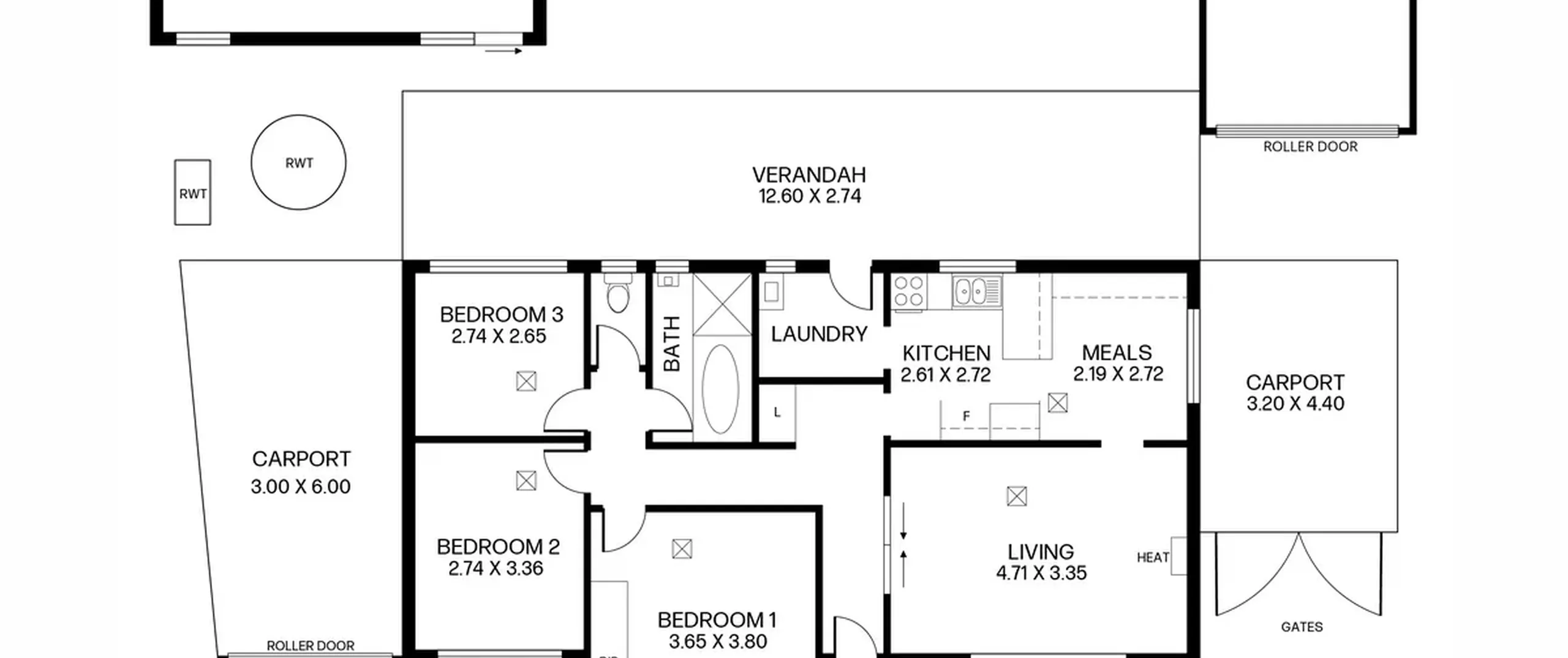 - Carport 1 with double gates and drive through access to rear shed