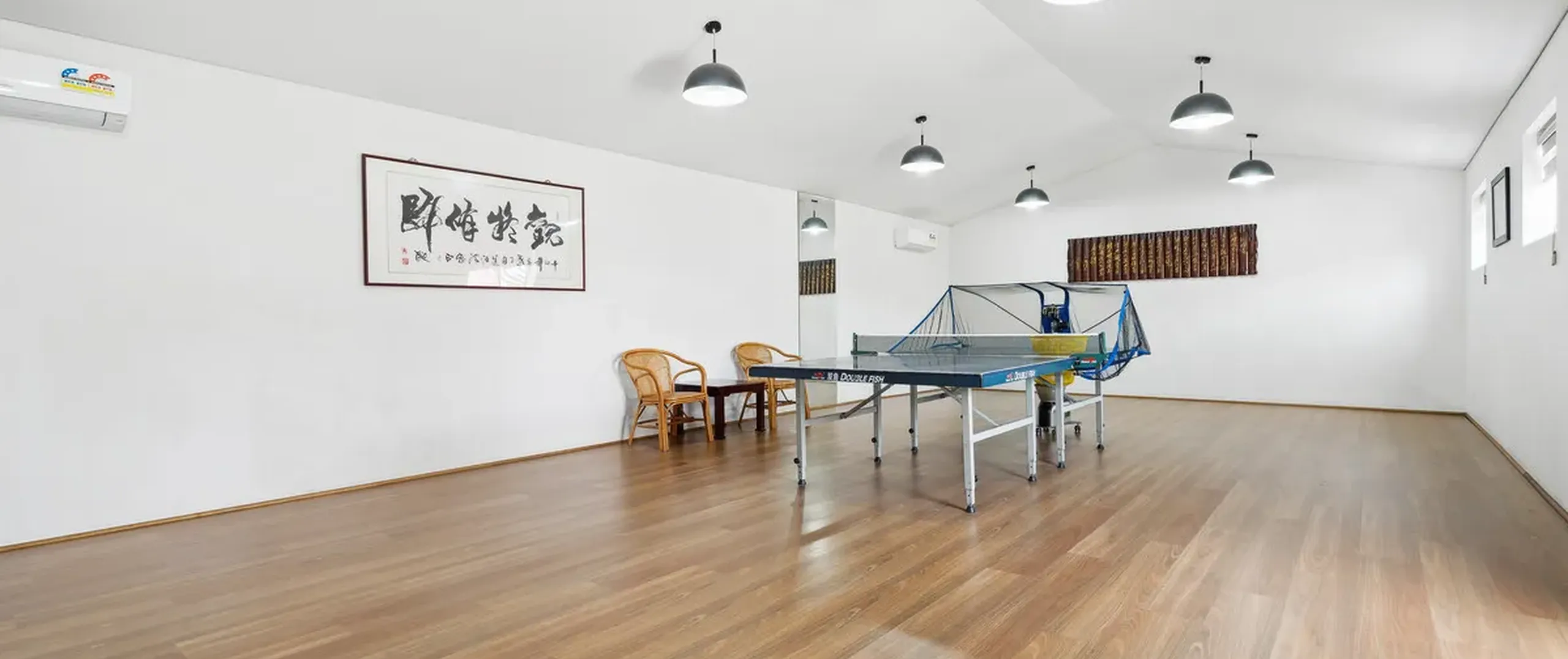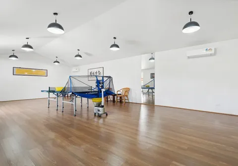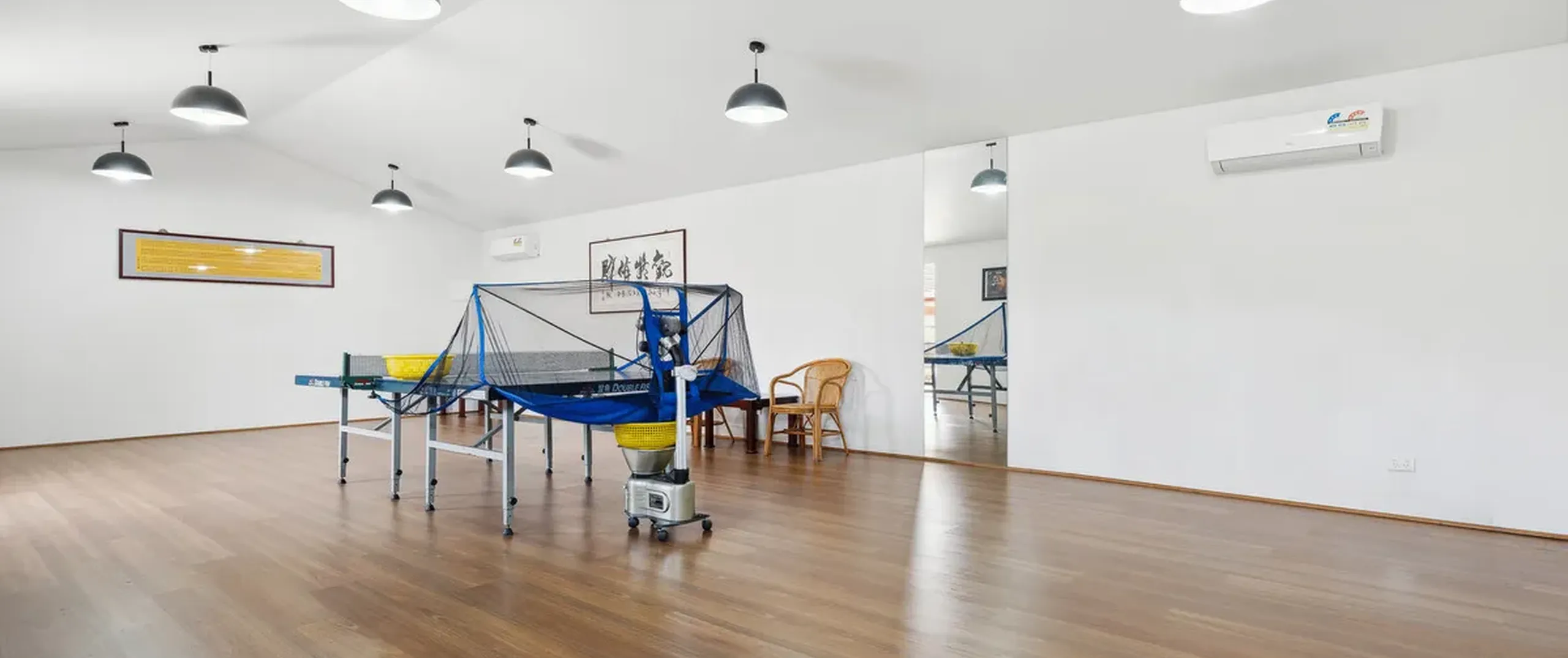 - Separate external studio/rumpus with modern flooring, split system air conditioning and ample lighting, purposely built for tennis coaching and can be used for all purposes
