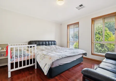 The thoughtfully designed layout includes a spacious master bedroom complete with an ensuite and walk-in robe, accompanied by three additional generously sized bedrooms. A formal lounge provides a serene retreat, while the light-filled open-plan kitchen, dining and family area is perfect for everyday living and entertaining. Sliding doors open to a spacious rear yard featuring an external studio/rumpus room, which could also serve as a fifth bedroom.