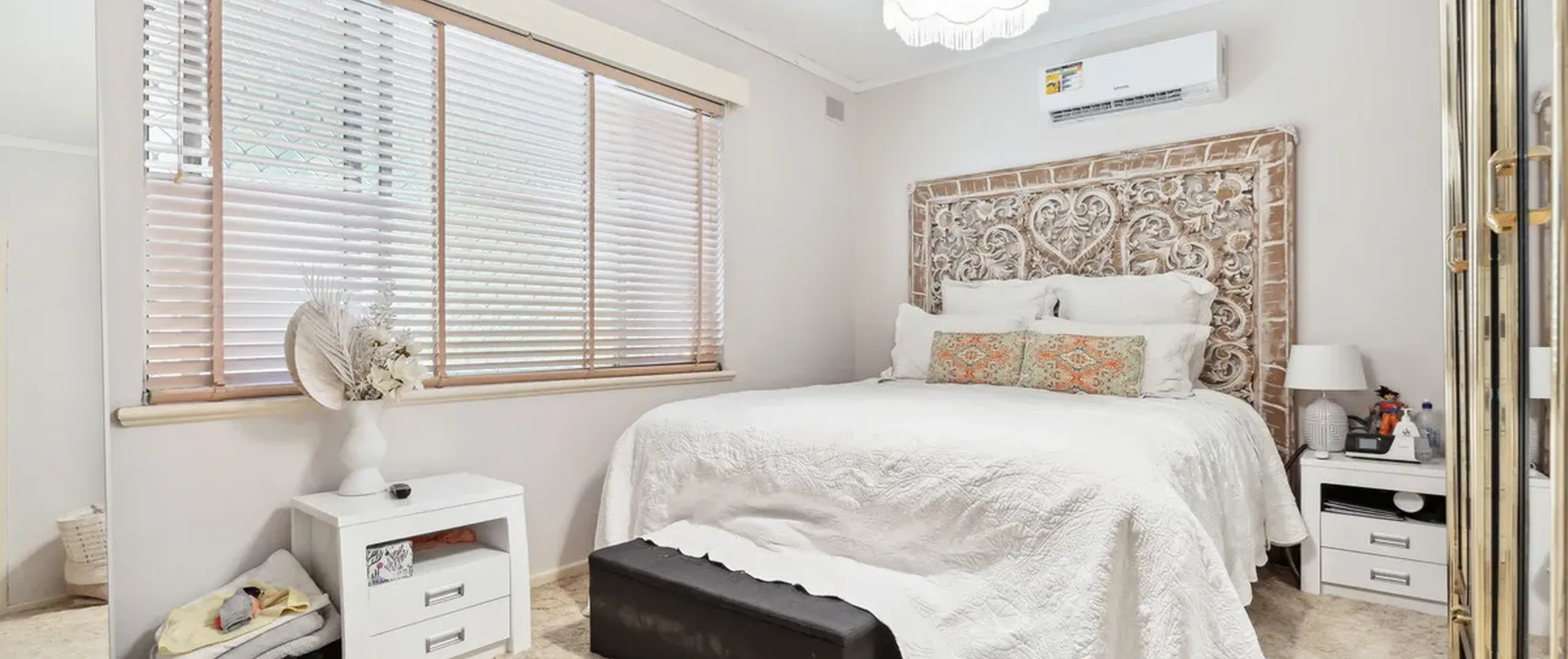 - Three bedrooms; bedrooms one and two with air conditioning and bedroom three with ceiling fan and built-in robe