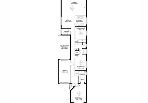 - Single garage with front electric roller door, with through access to rear yard and internal access