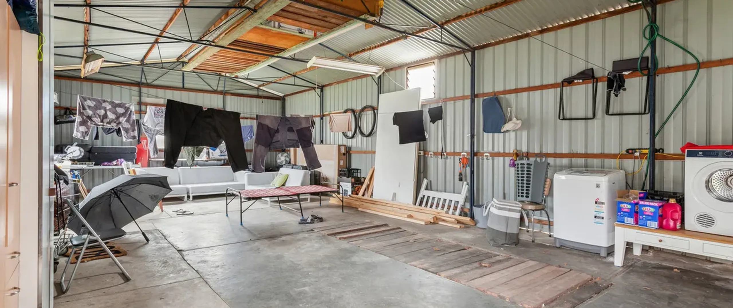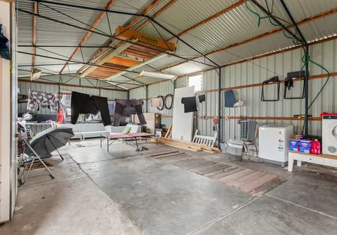 - Large garage/workshop (6.11m x 12.23m approximately) with two roller doors, perfect for storage or hobbies
