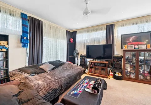 - Spacious bedroom with ceiling fan, built-in robe and access to bathroom