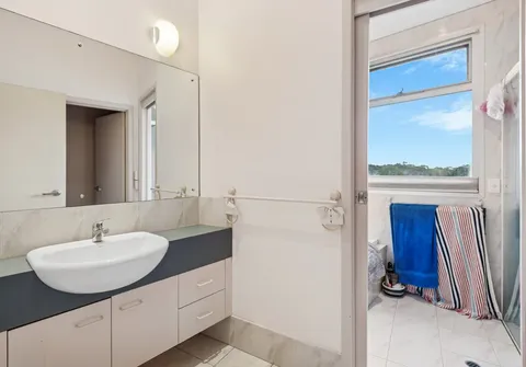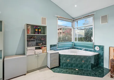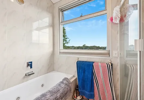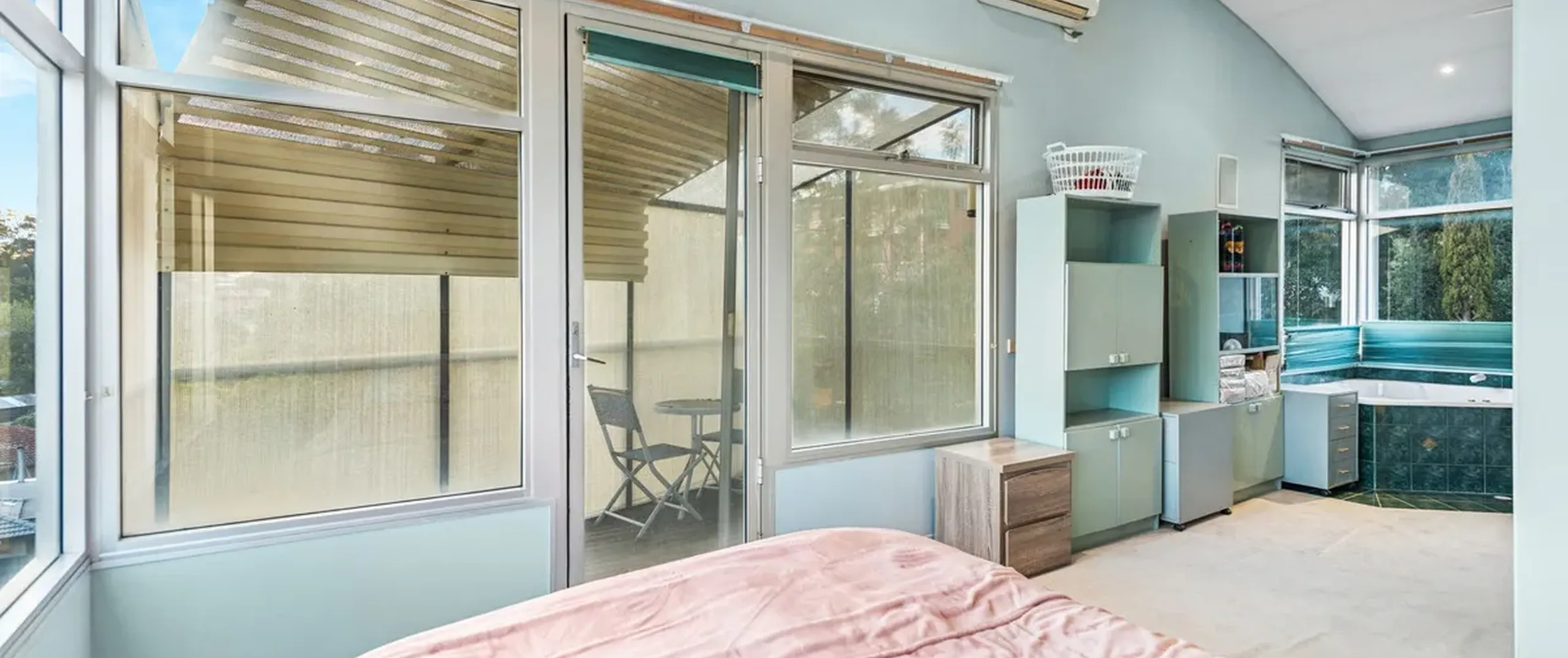 - Large main bedroom with ceiling fan, spa bath, split system air conditioner, walk-in robe, ensuite and balcony