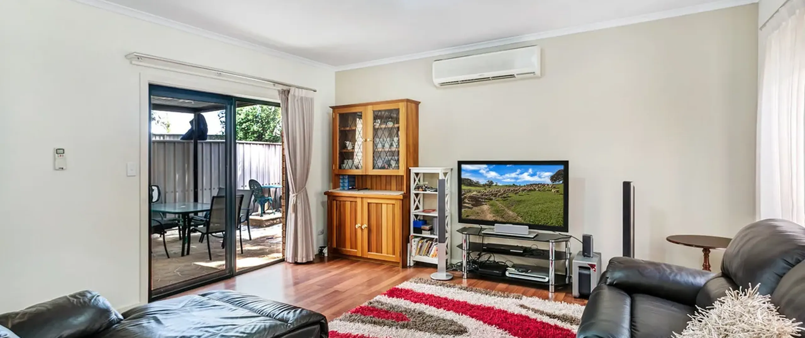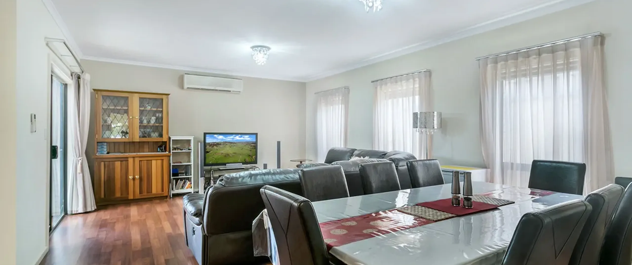 - Open plan kitchen/dining/lounge area with split system air conditioner