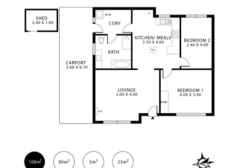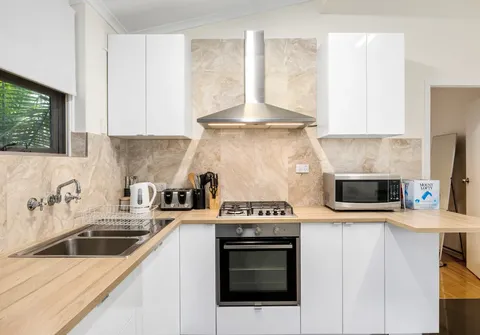 The layout offers two bedrooms and one bathroom as well as a light-filled lounge room, with air-conditioning, plus a spacious dine-in kitchen. Here, gas cooking and ample storage await while a laundry and a central bathroom complete the floorplan.