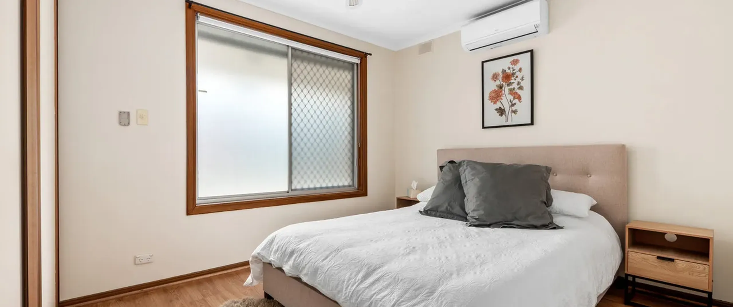 - Good sized bedrooms 1 and 2; both with ceiling fans and bedroom 1 with built-in robe and split system