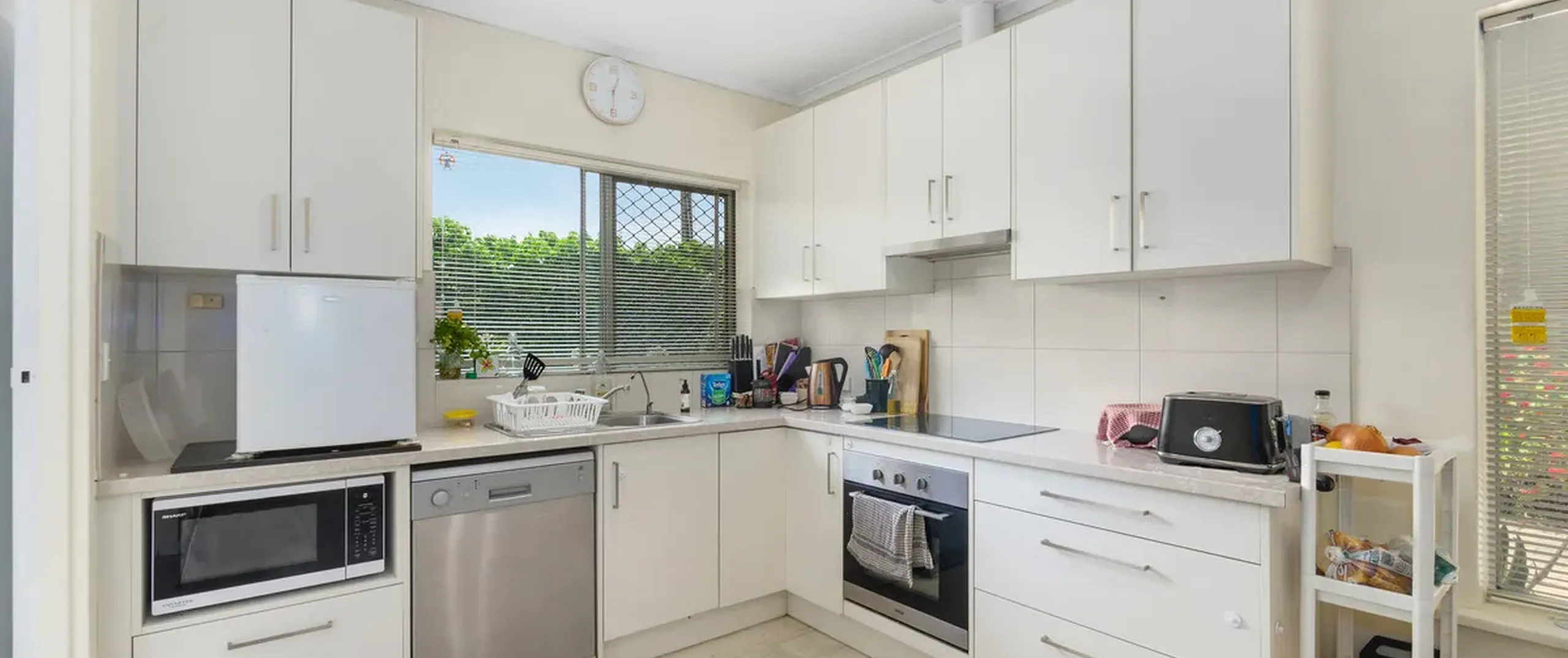 - Practical kitchen with ample cupboard and bench space