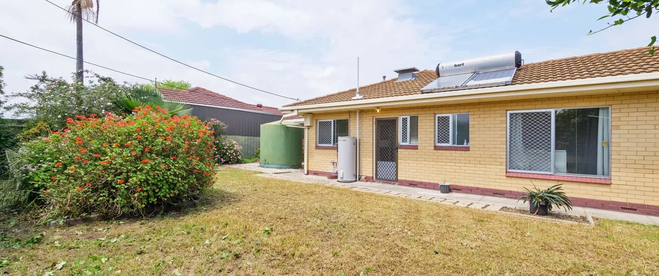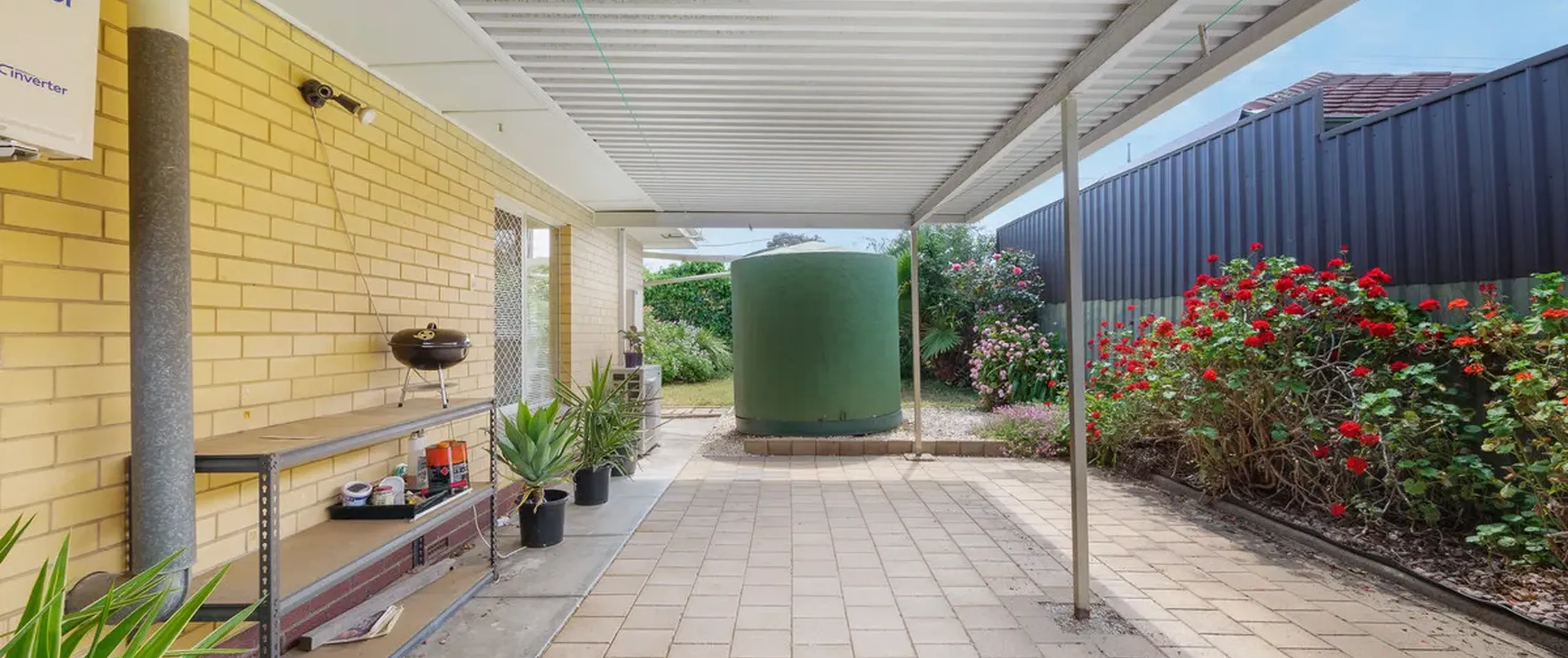 - Fully fenced backyard with garden shed, storage area and rainwater tank