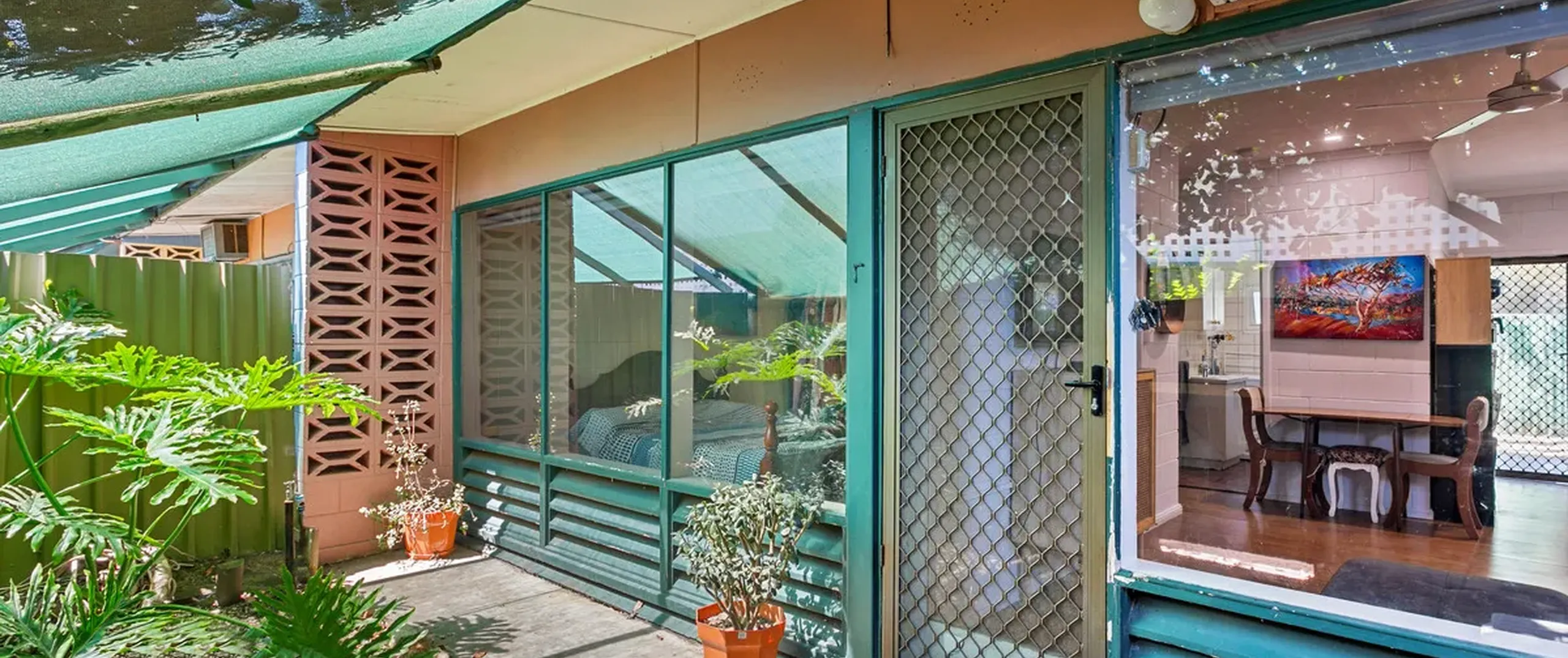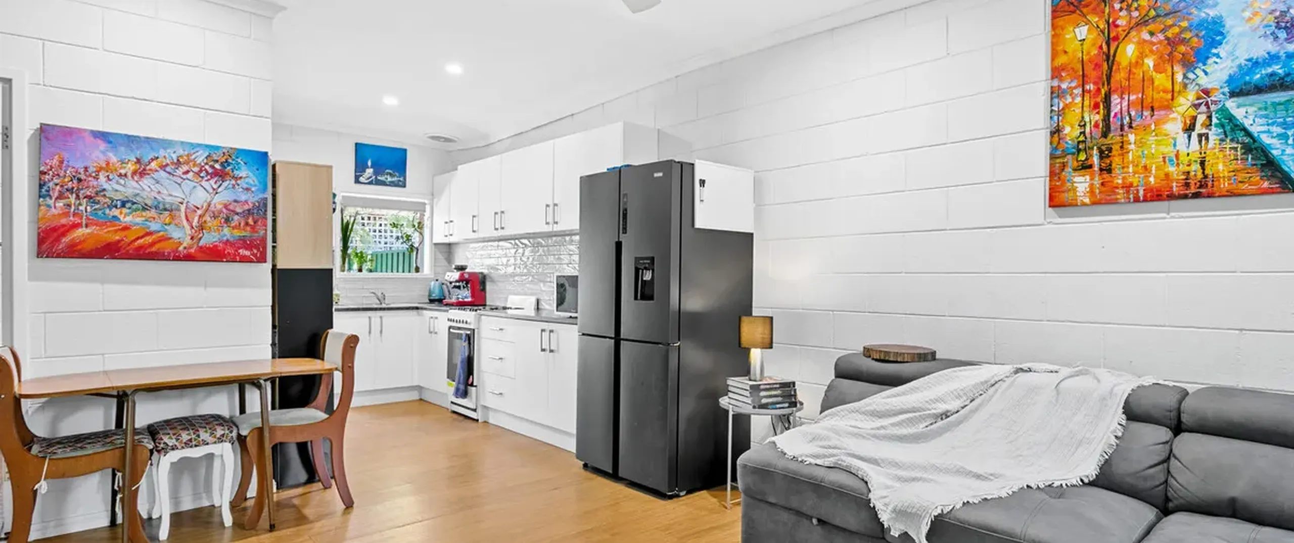 - Light-filled living/meals area with split system air conditioner and ceiling fan