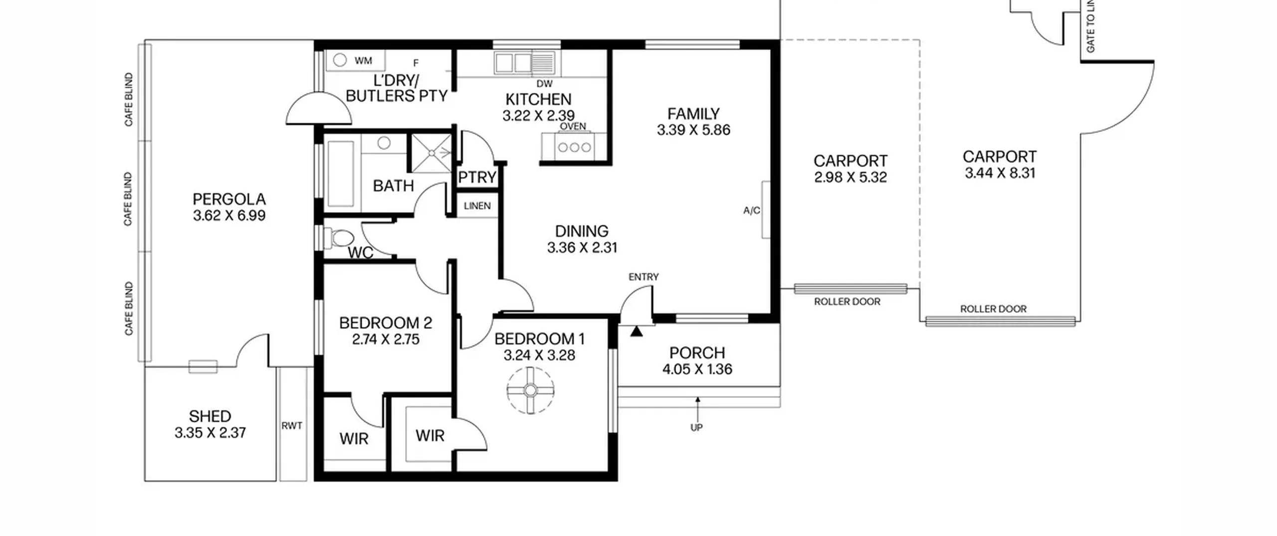 - Two secure carports with electric roller doors, plus driveway parking for up to three additional vehicles