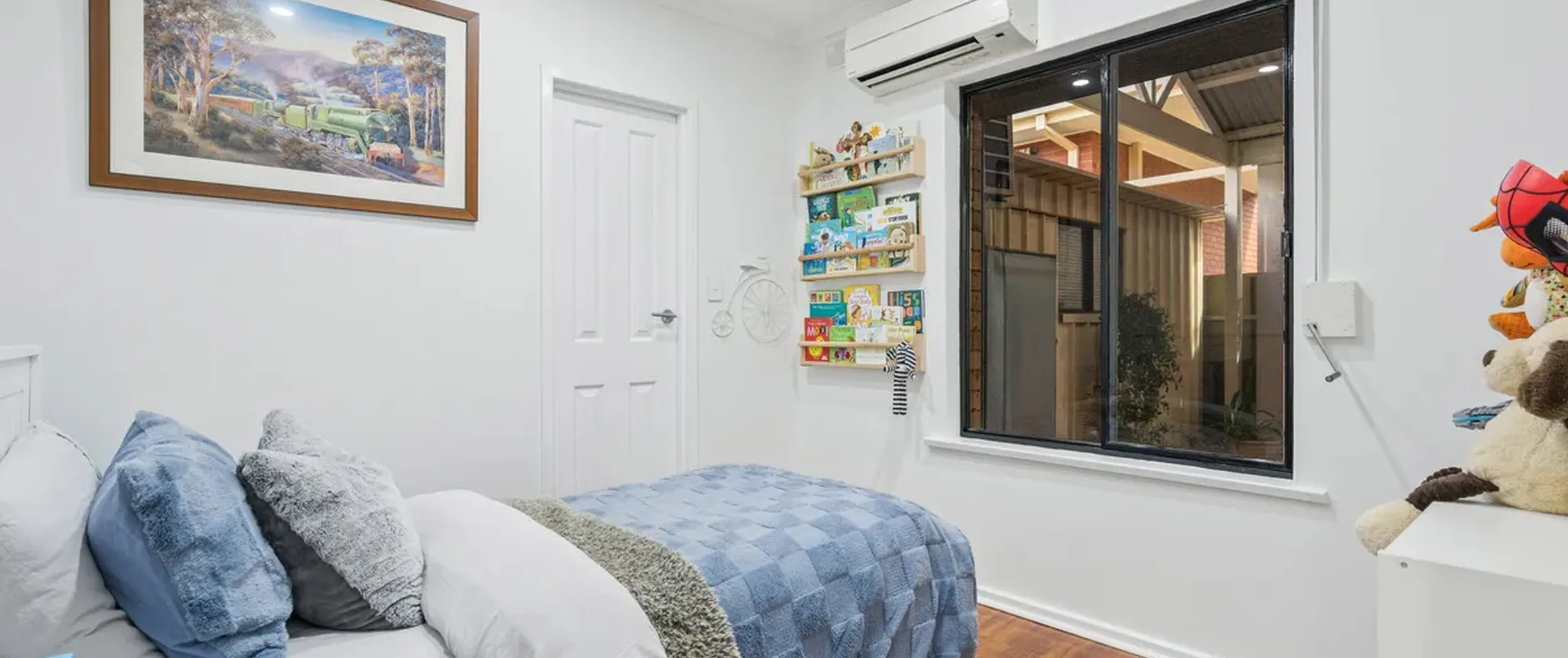 - Split-system reverse cycle heating and cooling to the main living space and bedroom
