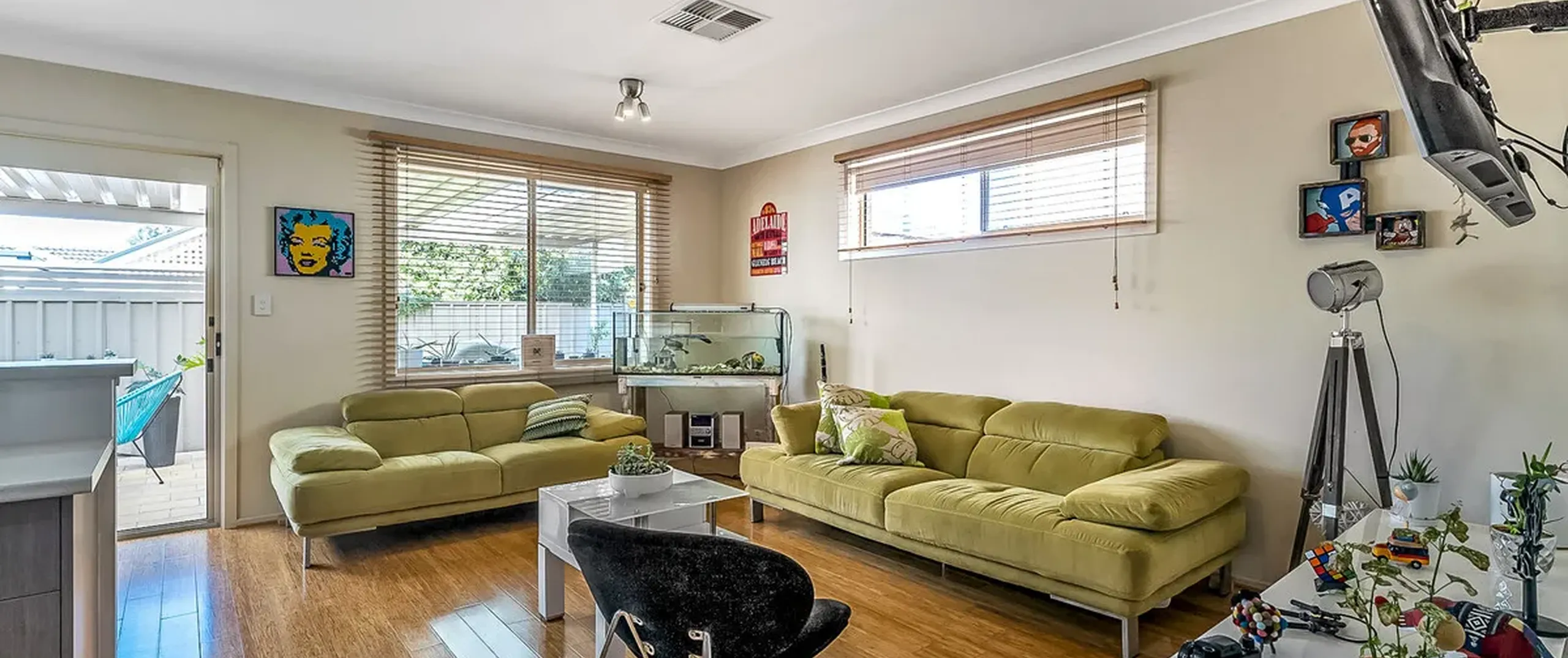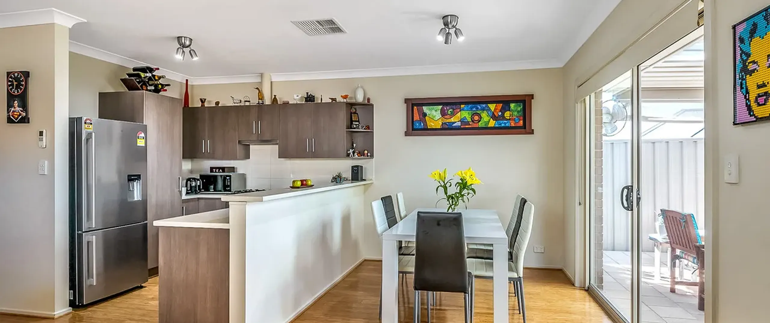 - Large glass sliding doors leading out to the paved verandah