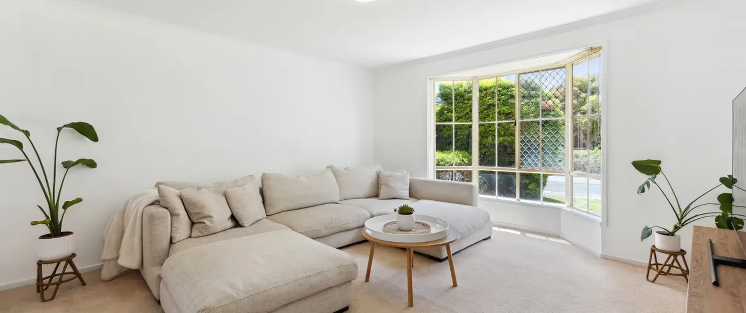 - Welcoming lounge room with a charming bay window and lush carpet