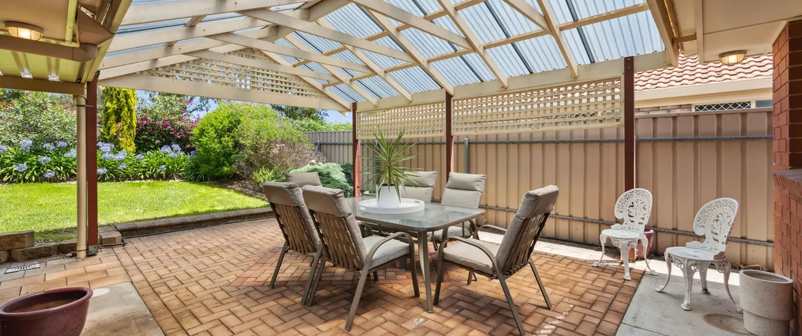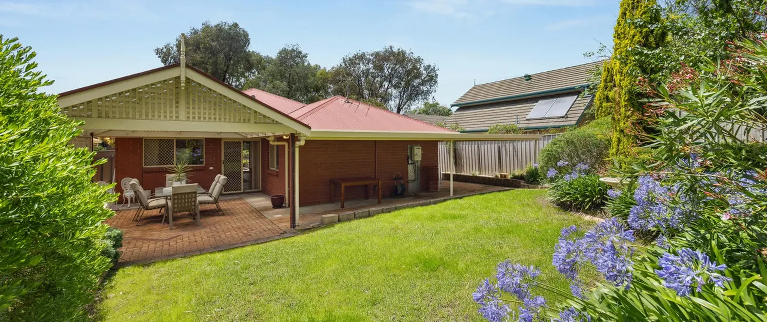 - Spacious rear yard with a pitched roof pergola for outdoor entertaining