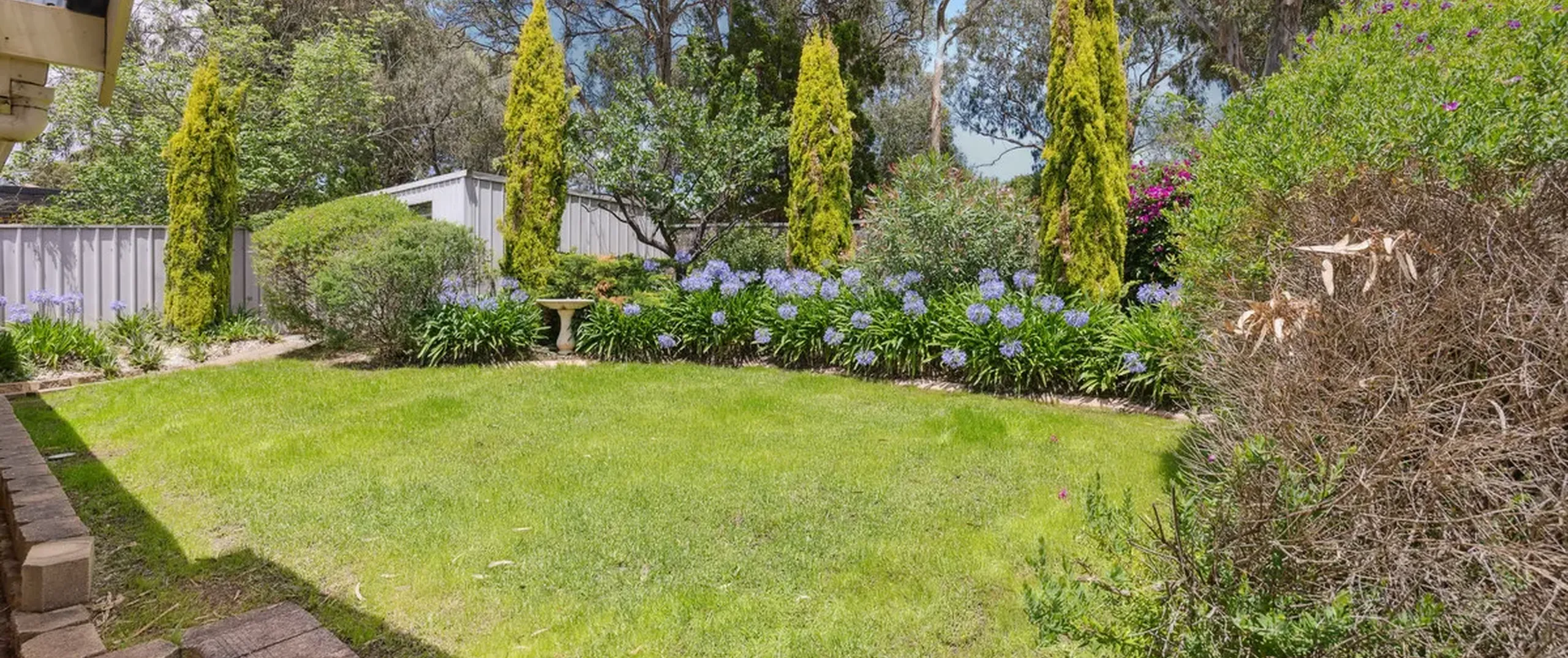 - Established garden with lush grass