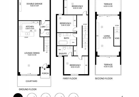 The attention to detail continues into the first floor with a large master bedroom, featuring a built-in robe and luxe ensuite. The second and third guest bedrooms are of great size and have easy access to the centrally located and attractive main bathroom.