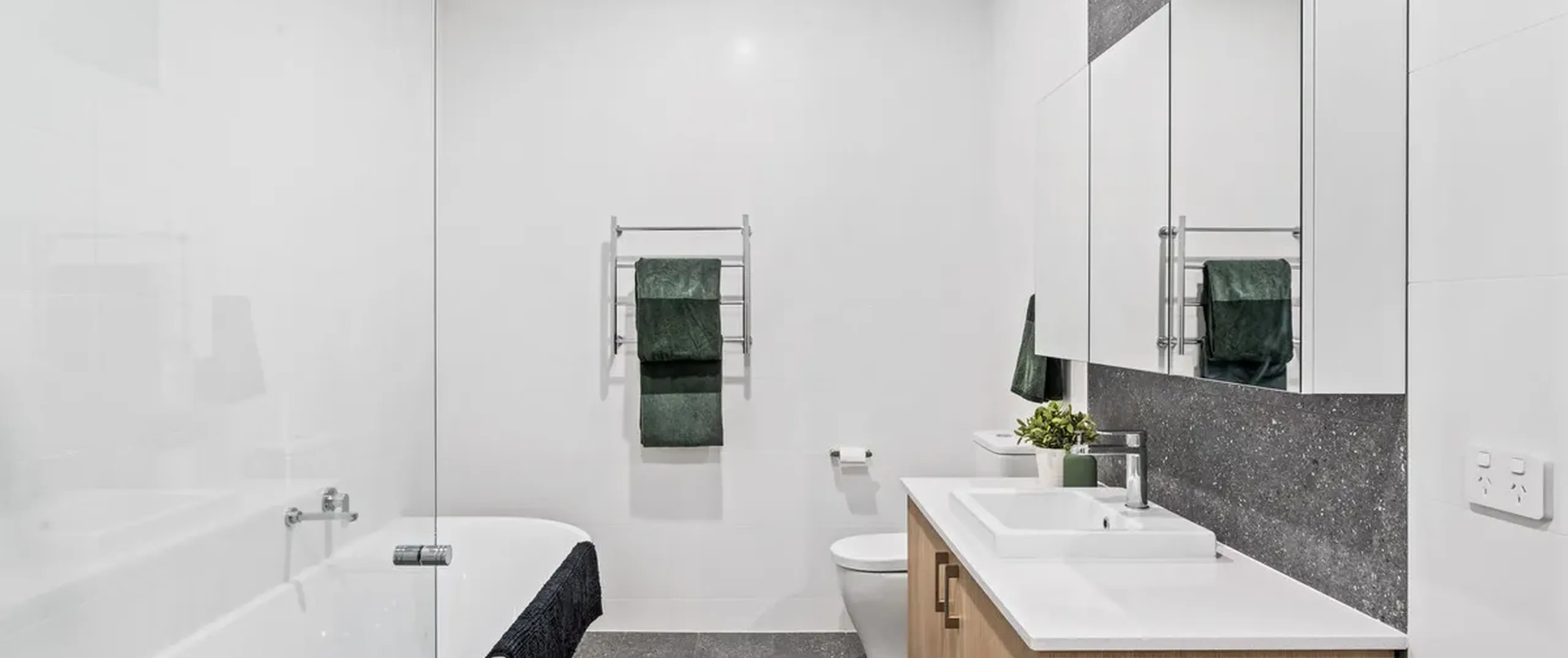 - Generous master bedroom with wall-length built-in robe and stylish ensuite with floor to ceiling tiles