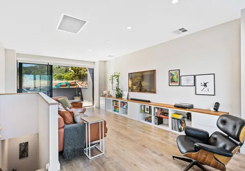 On the third level, you will find a large open terrace with stacker doors that seamlessly connect the indoors and outdoors. This outdoor space is truly amazing, providing a perfect spot for relaxation, entertainment, and enjoyment of the beautiful surroundings. The terrace is ideal for hosting gatherings with family and friends, or simply for a peaceful moment alone with the stunning views. You can watch the city come alive in the evening as the lights twinkle in the distance. This is truly a remarkable property that will exceed your expectations and leave you in awe of its beauty. With a striking street appeal and a modern style inside, there is nothing to do but simply move in, relax and enjoy this extraordinary property in an exquisite enclave!
