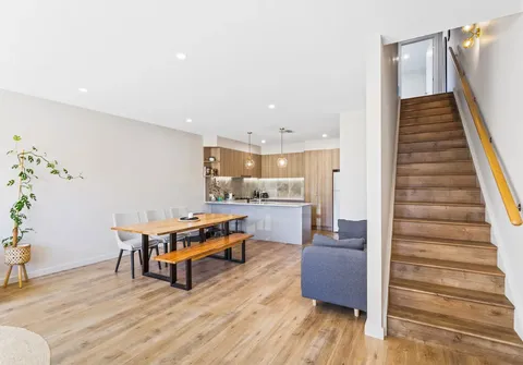 No matter the mood or occasion, this imposing layout has a comfortable space to suit everyone. Enjoy a private front courtyard that faces the reserve which is a prefect space to wind down and relax. The living spans over three levels with the centre of the home being the captivating open-plan kitchen, meals and living area. The sleek kitchen is a cook’s dream with quality inclusions while a wall of sliding doors opens to create an effortless connection to the front of the home.