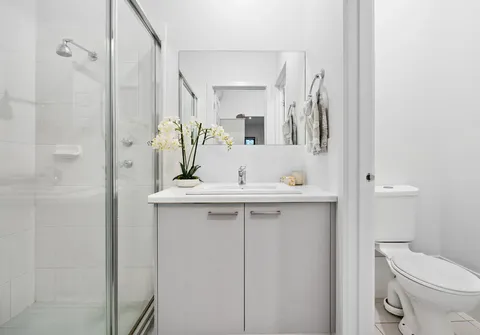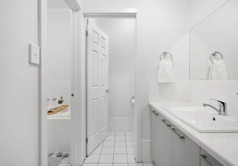 - Modern 3-way main bathroom with stylish vanity area, separate toilet, separate shower and spa bath