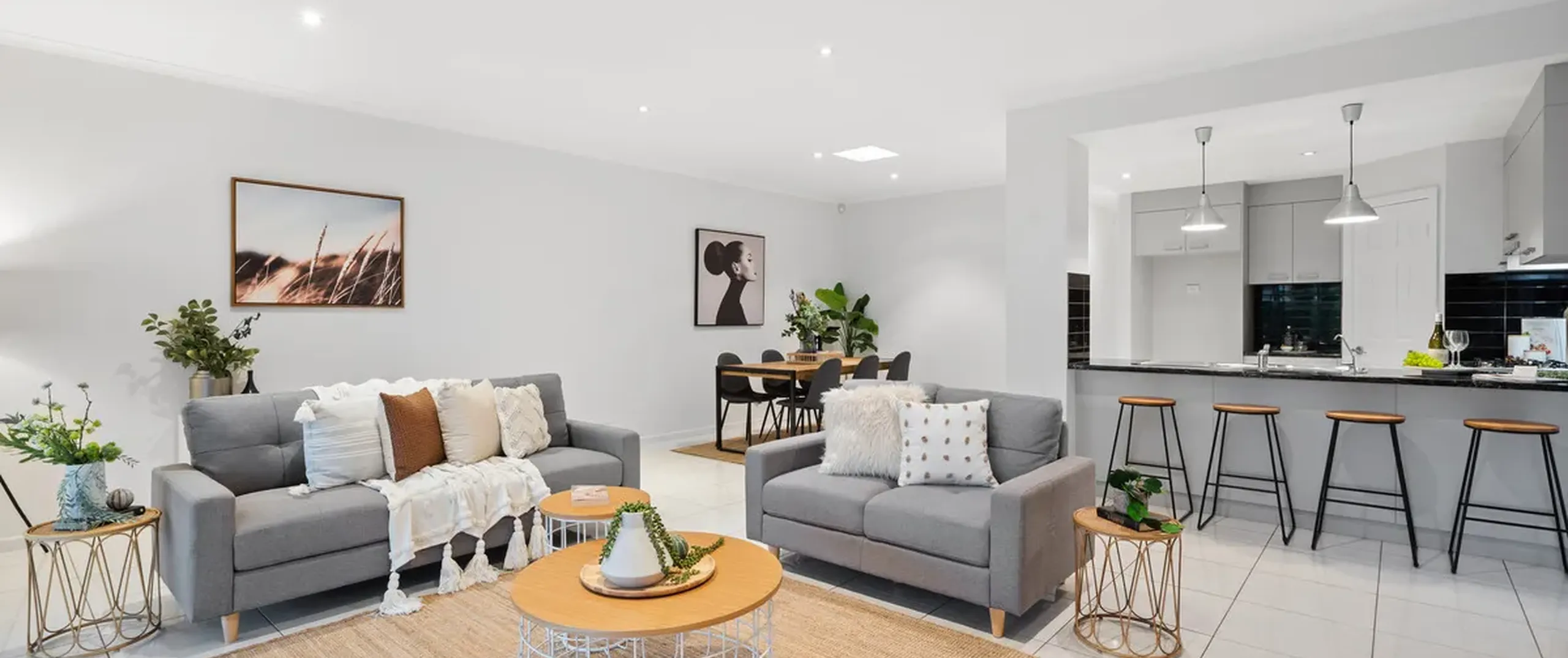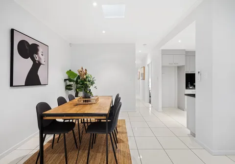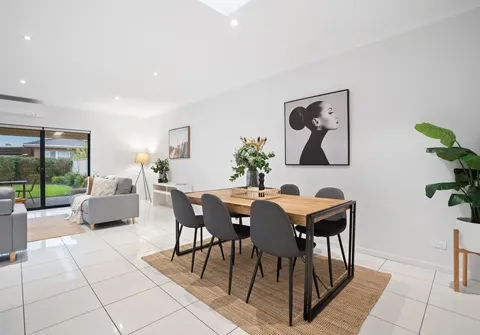 Situated on a low maintenance and fully landscaped 347sqm (approximate) allotment, the home comprises three bedrooms, two bathrooms plus powder room and a light filled open plan area with on-trend fixtures throughout. The stylish kitchen is equipped with stainless steel appliances, walk-in pantry, breakfast bar and modern pendant lighting. The space is complete with seamless flow through to the outdoor entertaining area that overlooks a beautifully presented garden and lawn area, perfect for the kids and pets.