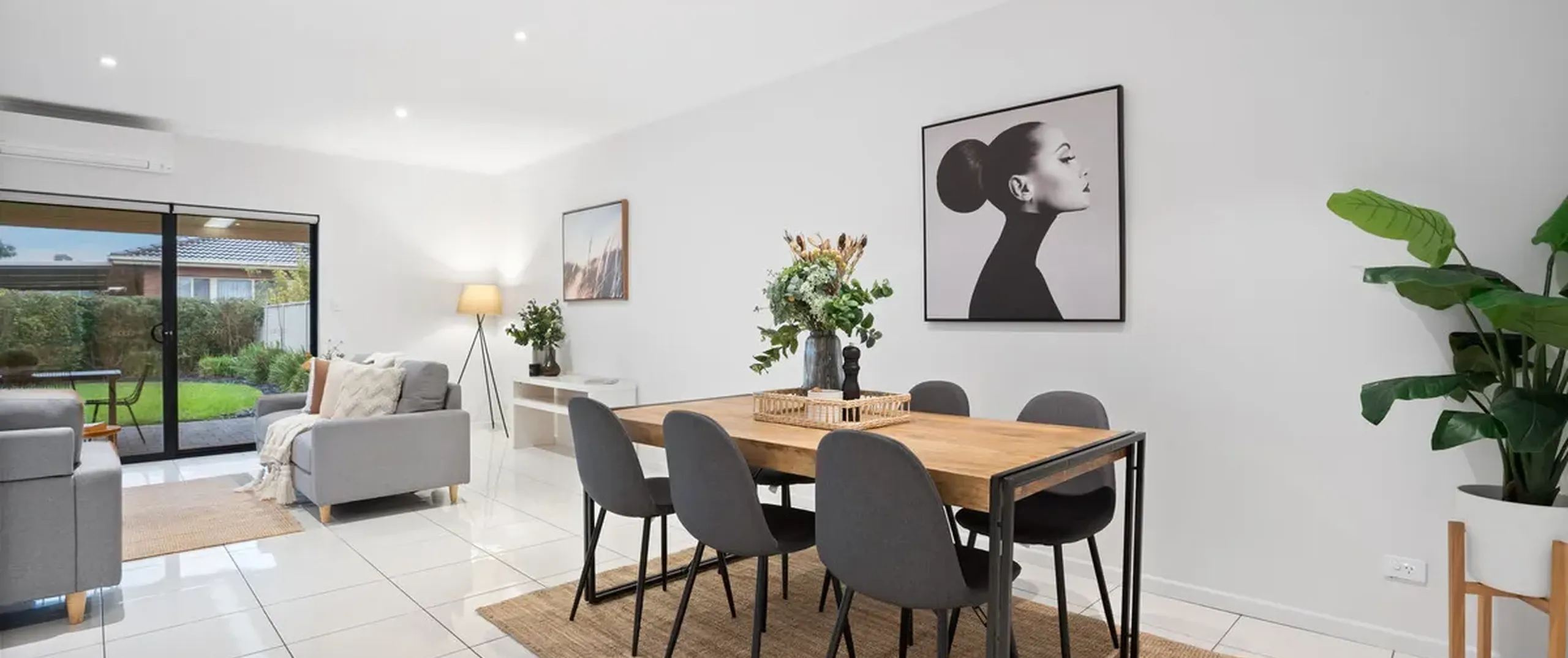 - Spacious open plan living and dining area with large sliding doors for seamless flow to the outdoor entertaining area and rear yard
