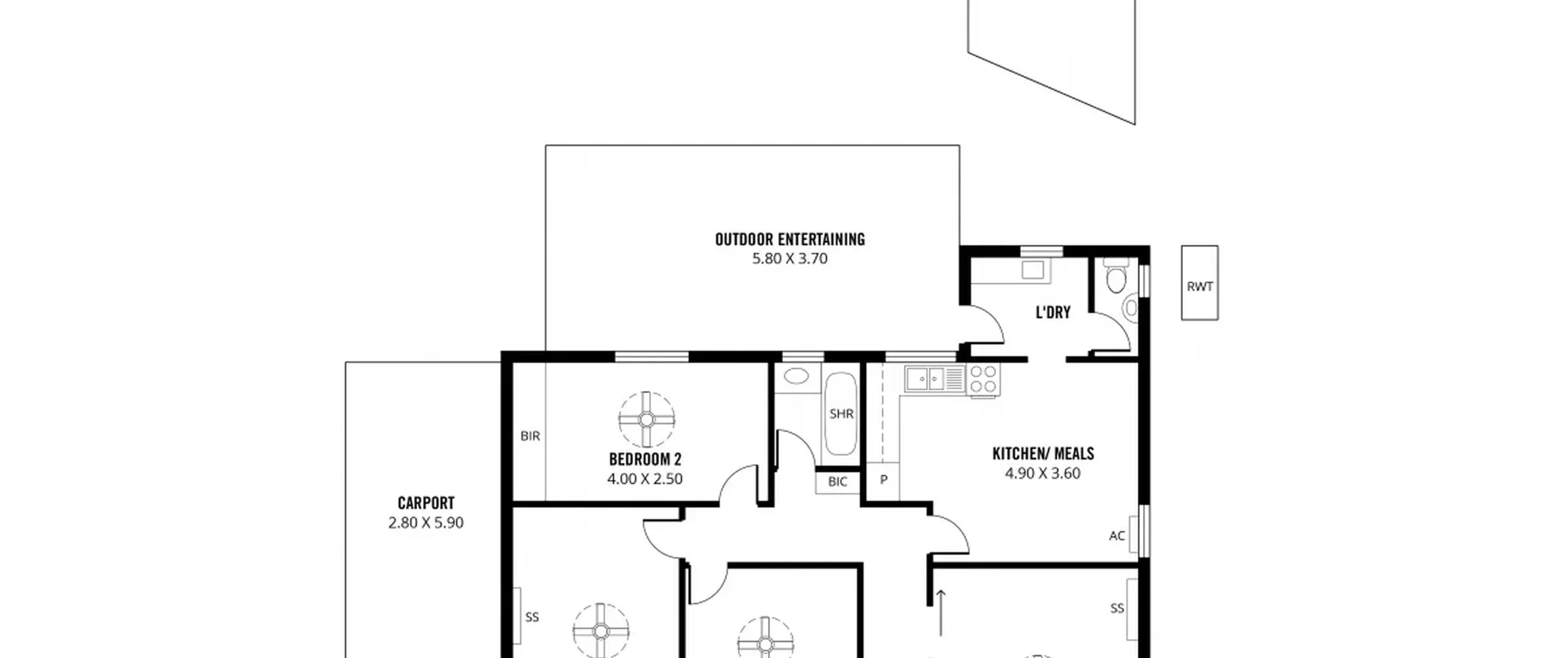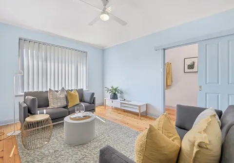 - Light filled lounge room with ceiling fan and split system air conditioner