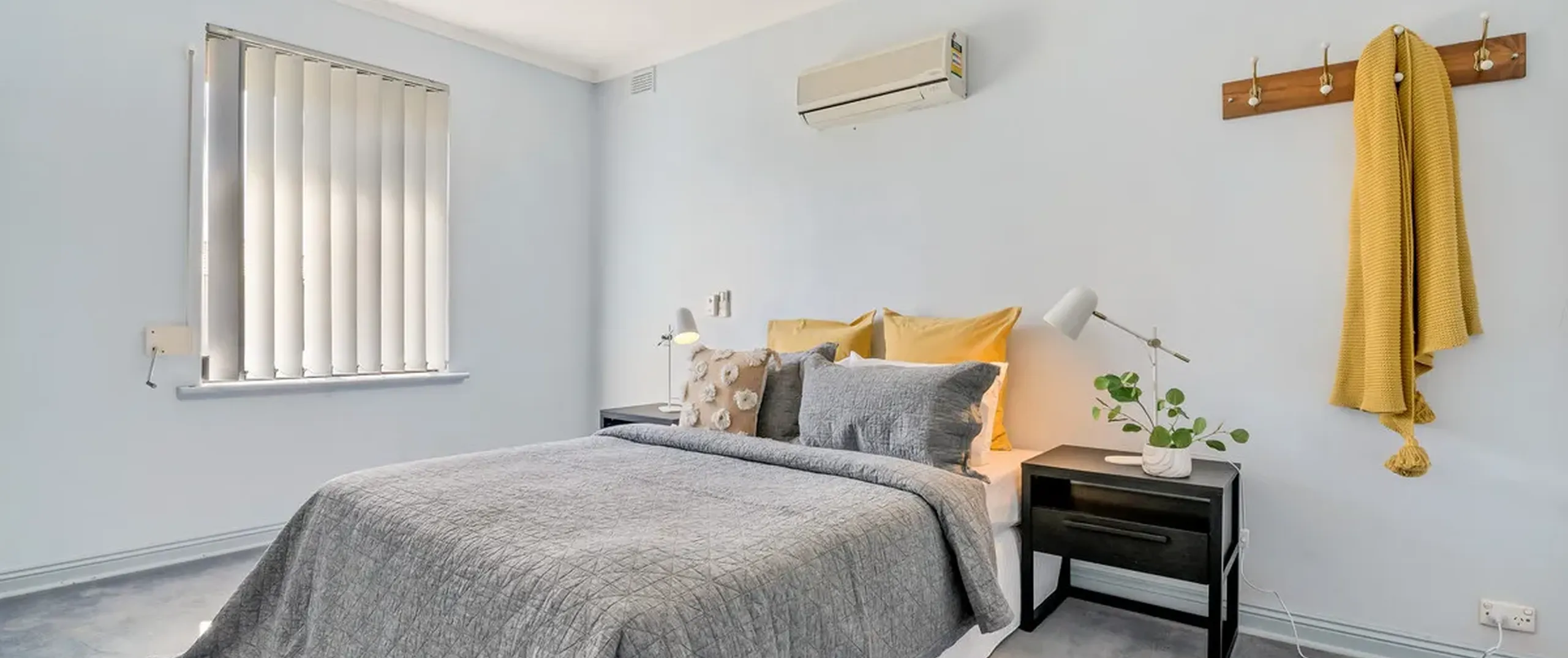 - Spacious master bedroom with ceiling fan and split system air conditioner