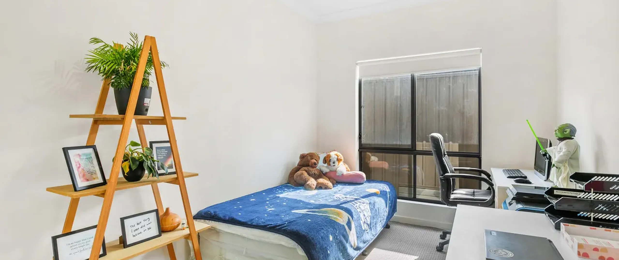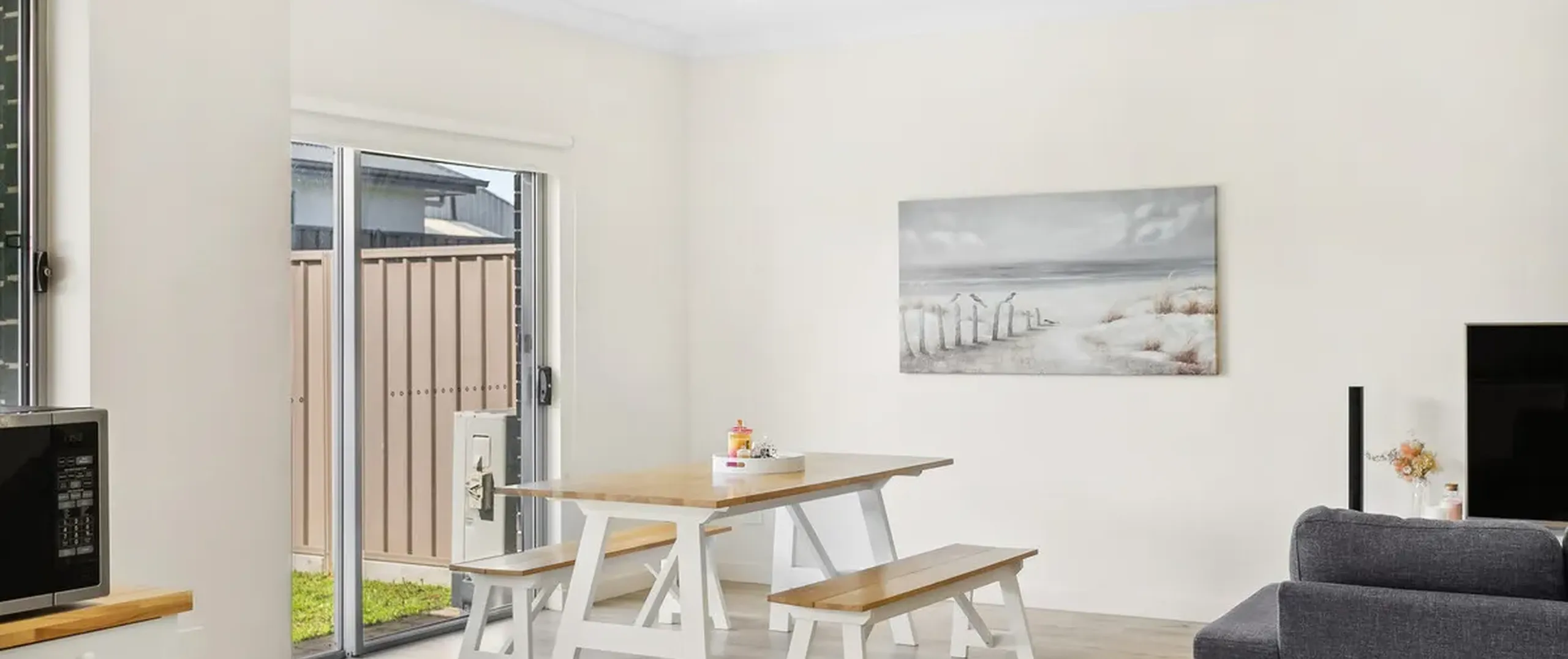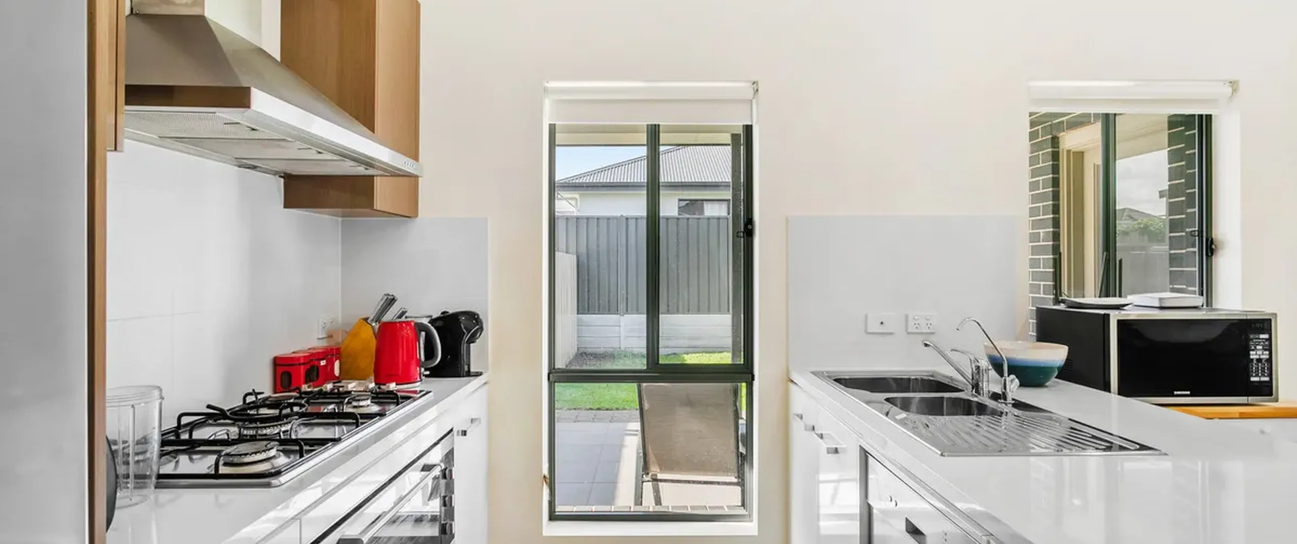 - Secure and fully fenced backyard with grass area perfect for kids and pets to enjoy
