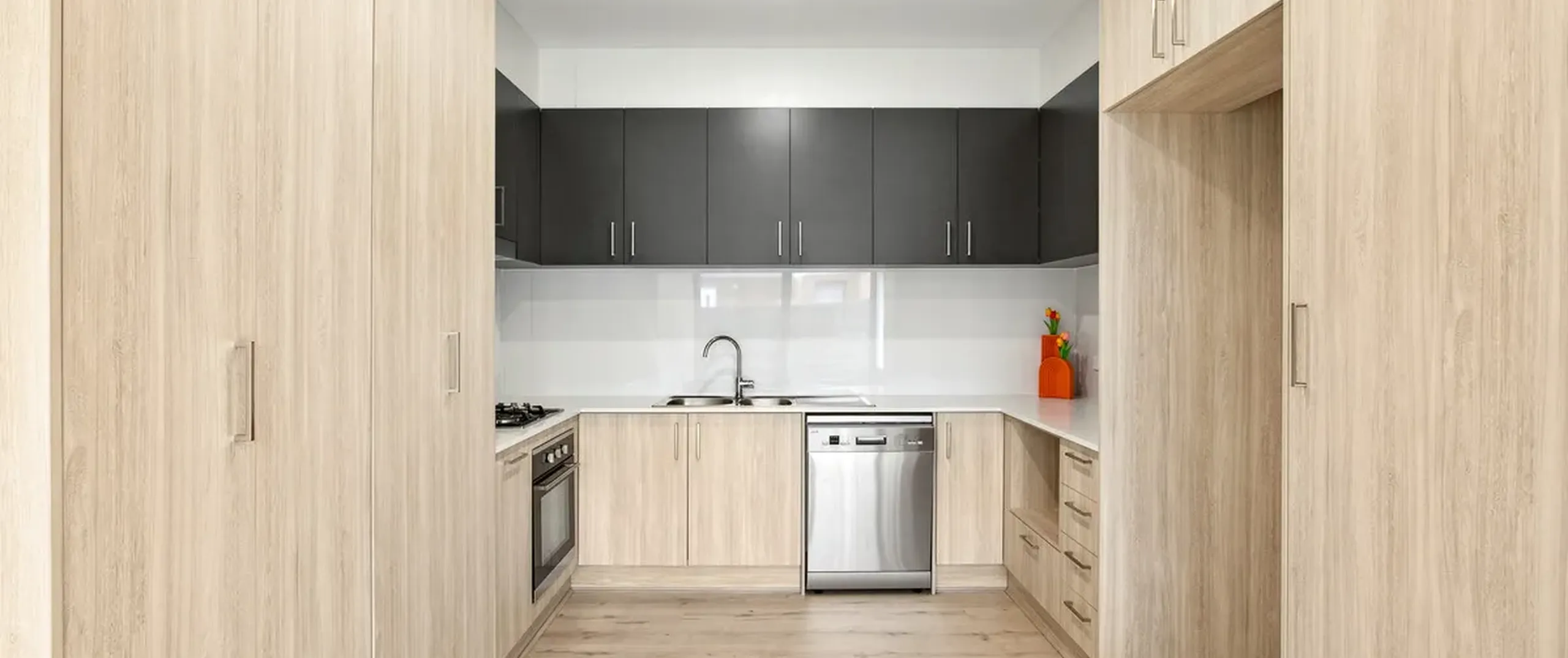 - Modern kitchen with stainless steel dishwasher, gas cooktop and ample cupboard, pantry and bench space