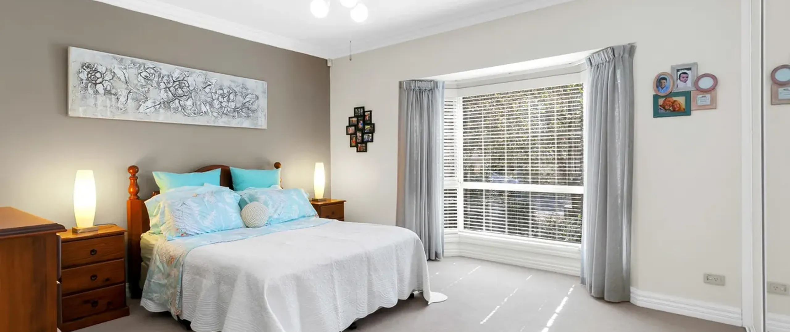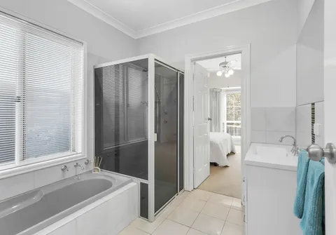 - Master bedroom with built-in robe, ceiling fan, bay window and access to the main bathroom