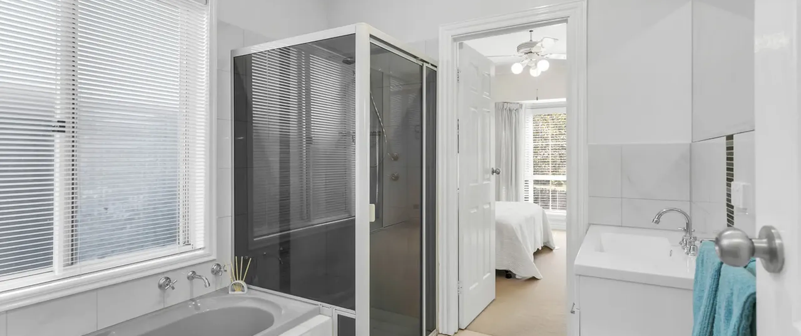 - Two-way bathroom with separate bath and shower