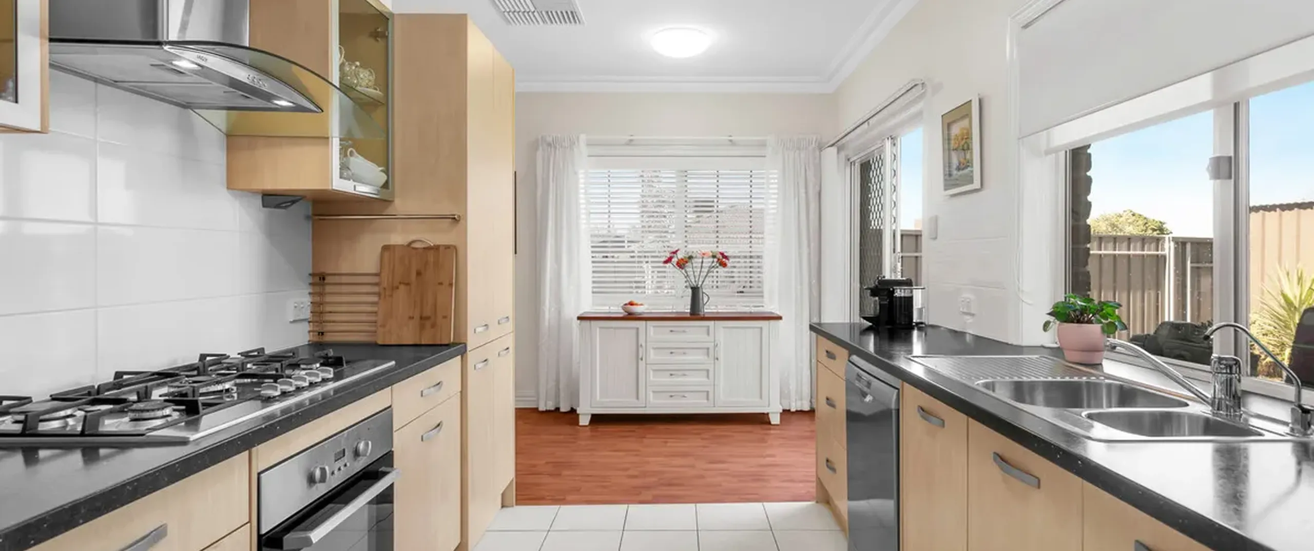 - Neat and tidy kitchen with stainless steel appliances, gas cooktop, dishwasher and ample bench and cupboard space