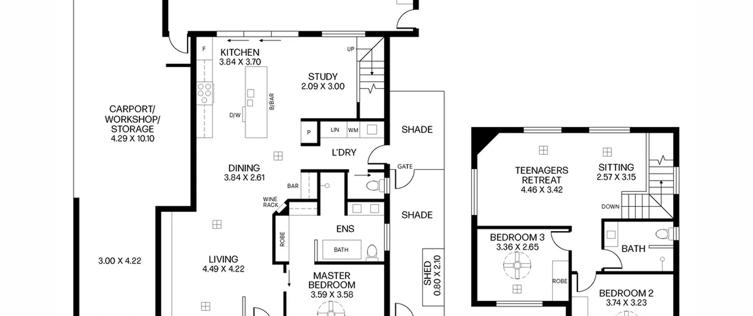 - Triple length carport with additional space for shelving (ideal for tradesman), automatic roller door and direct access to the alfresco