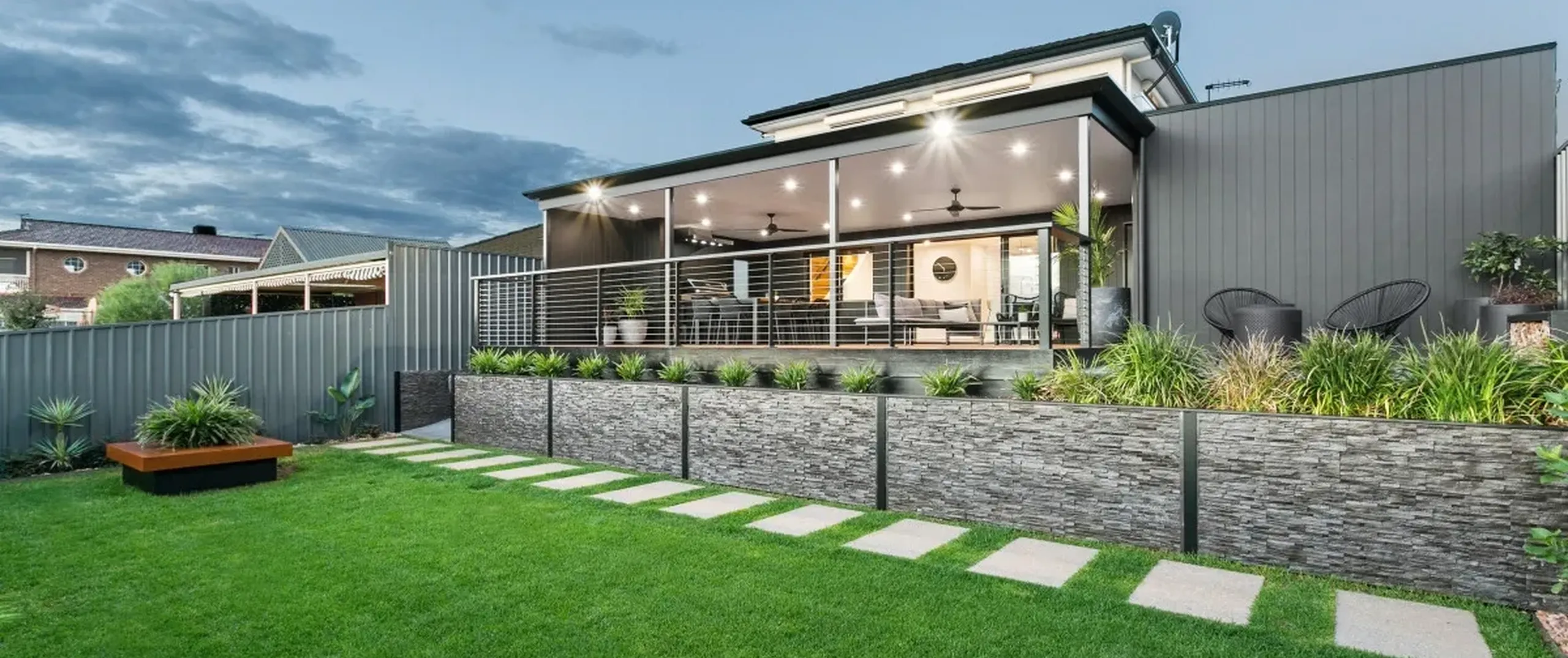 - Beautifully landscaped rear yard with spacious lawn area and garden beds
